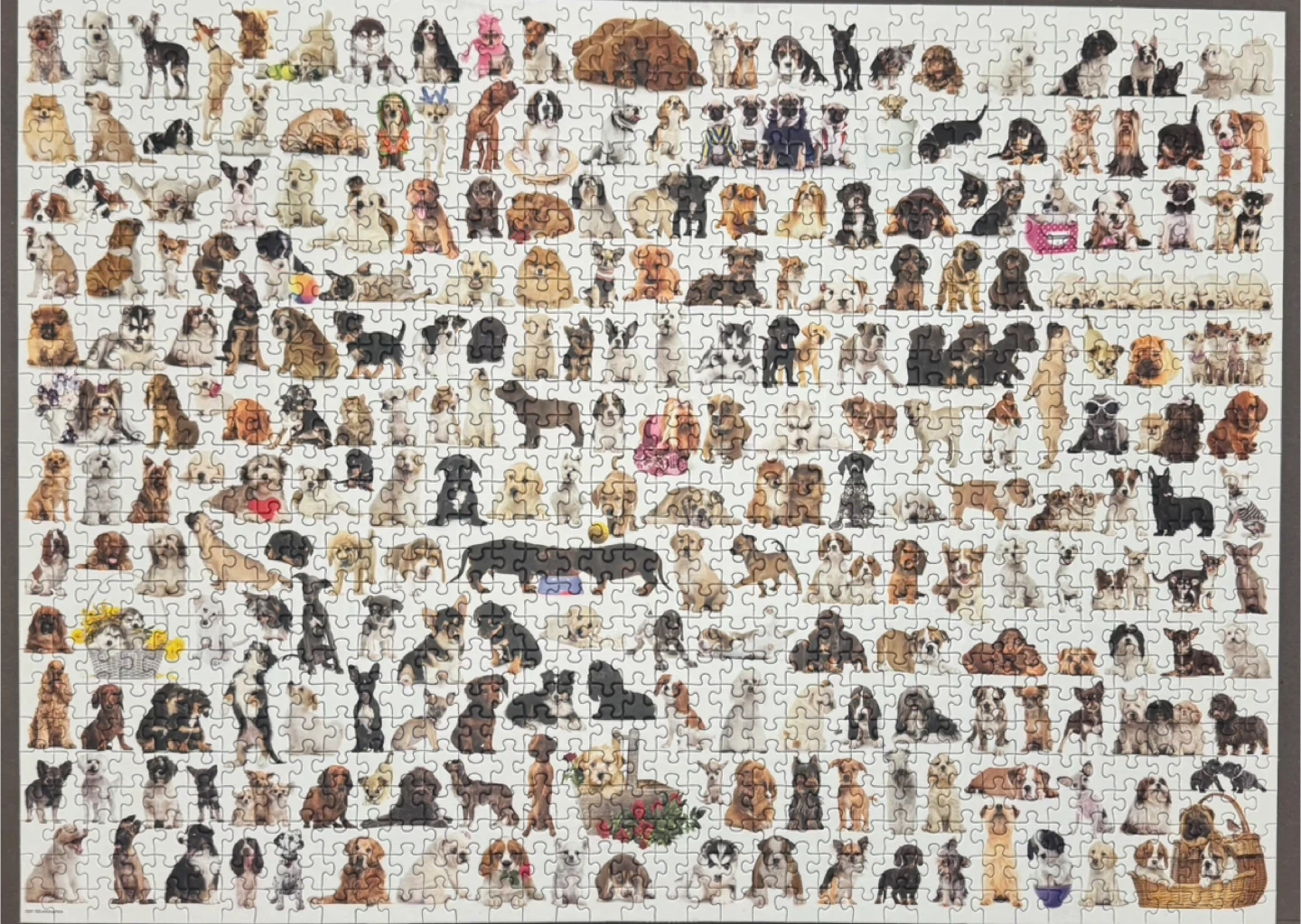 This Eurographics puzzle features "The World of Dogs" with 1000 pieces. Puzzle size is 19 1/4" x 26 5/8" (48.89 cm x 67.63 cm). It's printed and manufactured in Canada. Perfect for dog lovers looking for a challenge!
