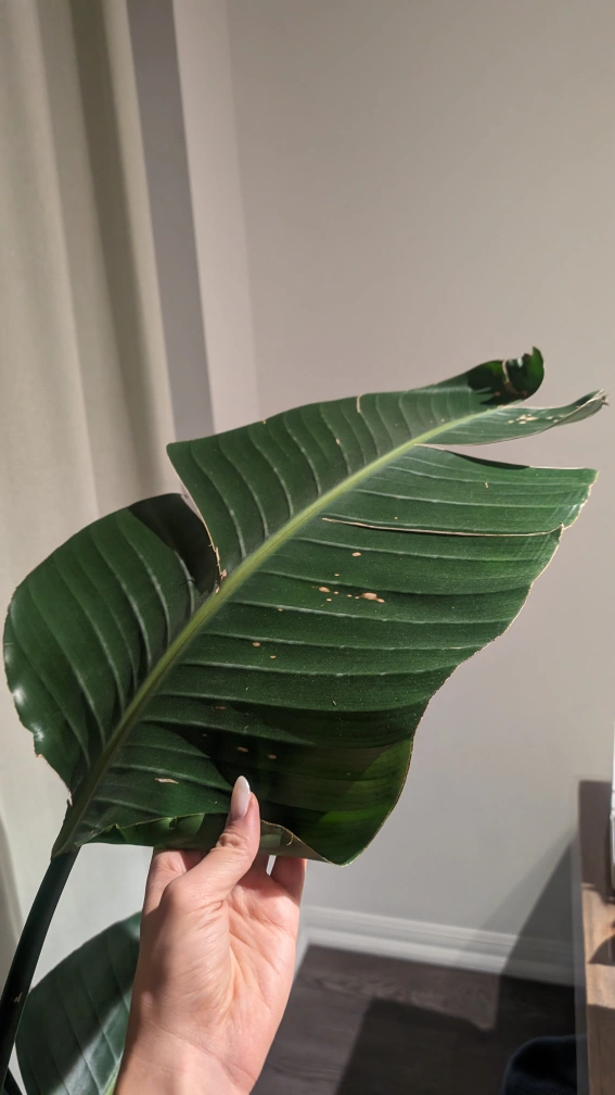 Another leaf has yellow spots due to weather changes i.e being under the flow of AC.