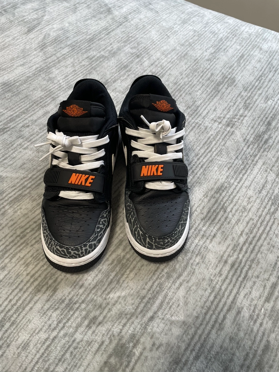 Selling a pair of Nike Jordan Trainer ST G shoes in black and white. They are a size 6Y. The shoes feature the iconic Jordan logo and a stylish design. Great for everyday wear or sports activities!