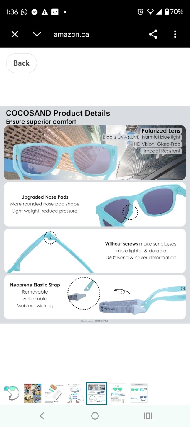 Baby sunglasses, New in the box . COCOSAND toddler sunglasses with 100% UVA & UVB protection. They come with a protective pouch and cleaning cloth. Includes original box. 40$ plus tax I will make it for 20