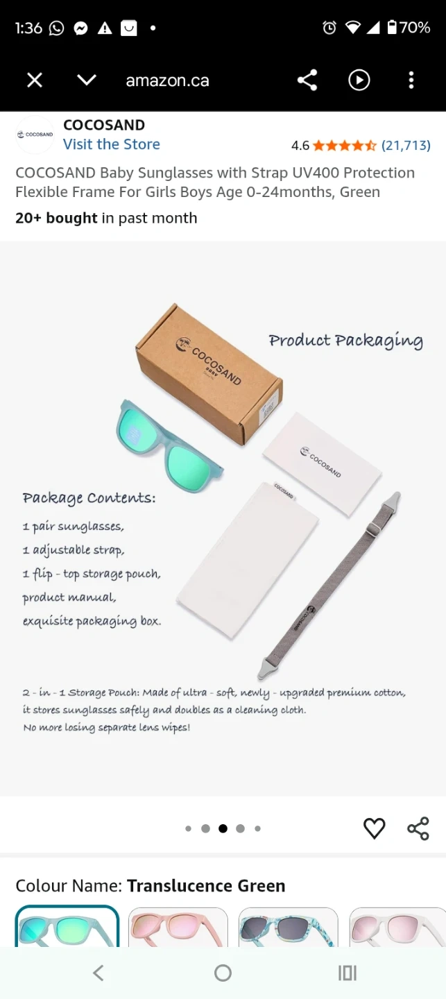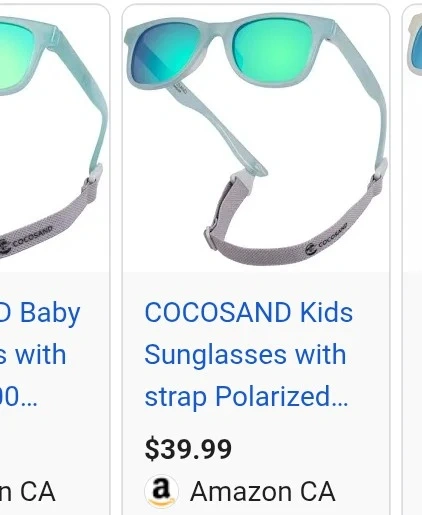 Baby sunglasses, New in the box . COCOSAND toddler sunglasses with 100% UVA & UVB protection. They come with a protective pouch and cleaning cloth. Includes original box. 40$ plus tax I will make it for 20