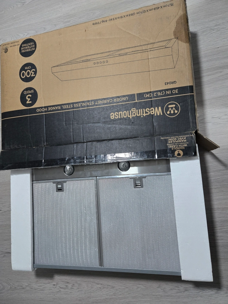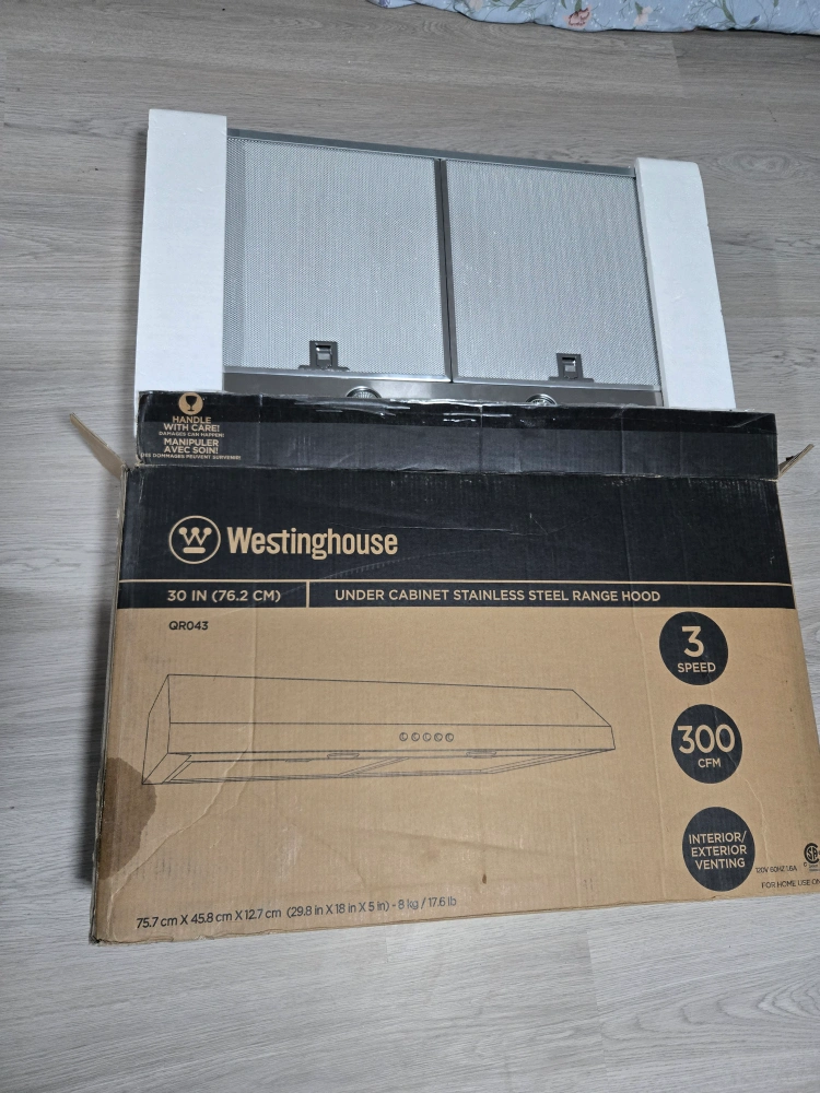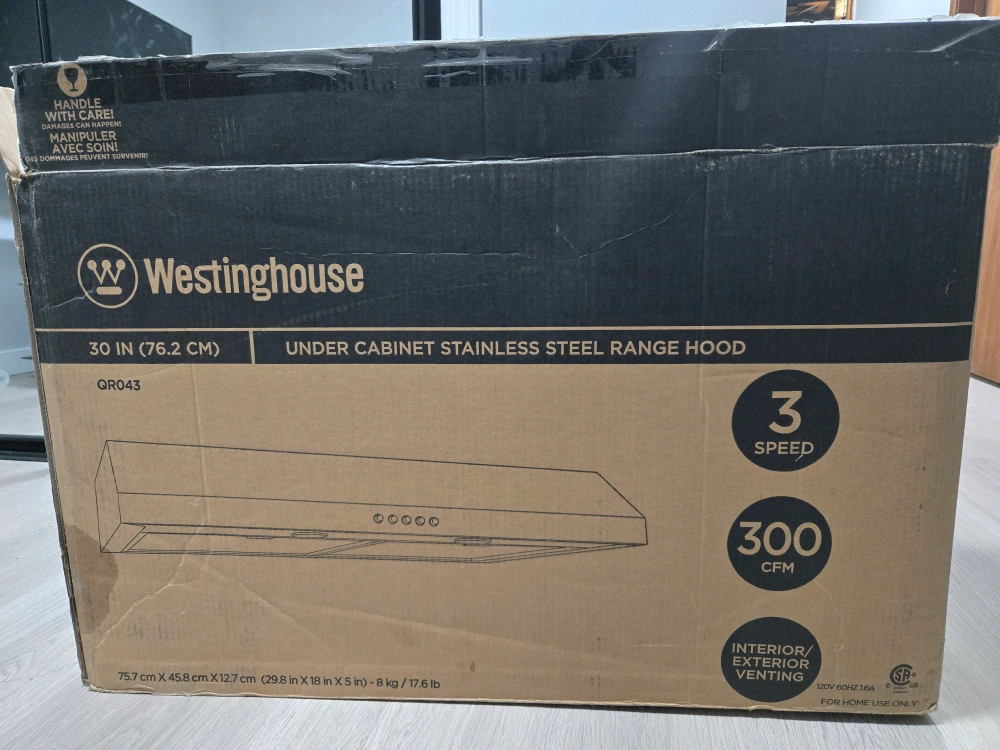 This is a Westinghouse 30 inch under cabinet range hood. It's stainless steel with 3 speeds and 300 CFM. It's designed for interior or exterior venting. it's totally brand new just open to check and change my mind asking for $200 or OBO.