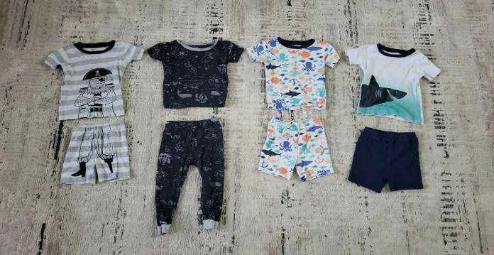 Mostly Carter's and The Children's Place. Includes: 4 pajama sets, 10 T-shirts, 1 sleeveless top, 1 shorts romper (small stain on front under collar), and 7 shorts. Cash only. If the ad is up, it's available. Check out my other postings for different sizes.