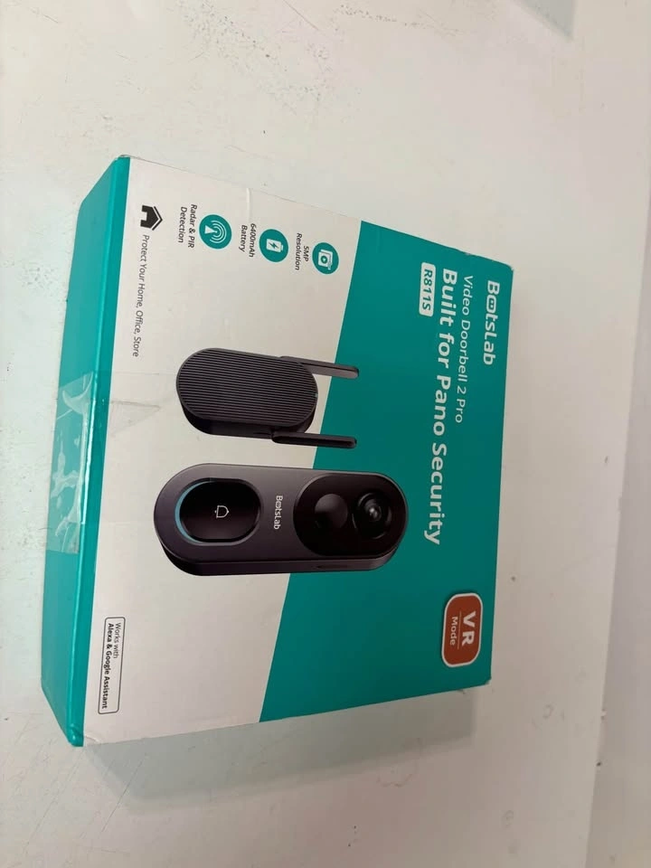 Brand new, never used. Still in the box. This is the Botslab Video Doorbell 2 Pro (model R811S), built for wide panoramic security and super convenient if you don’t want to deal with constant recharging. Key features: 5MP high-resolution video – very sharp image. Long-lasting 6400mAh battery (great battery life). Radar + PIR motion detection for accurate alerts. Wide panoramic view (Pano Security / VR mode) – see more of your front door. Two-way audio – talk to visitors from your phone. Works with Alexa & Google Assistant. Suitable for home, office, or small business. Wireless, clean install, and reliable. Perfect if you want solid security without monthly hassle.