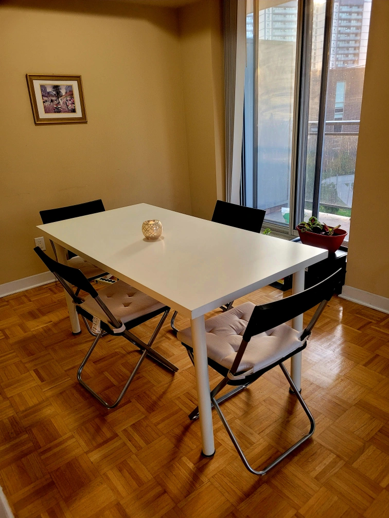 IKEA White Dining Table Plus Four Black Chairs