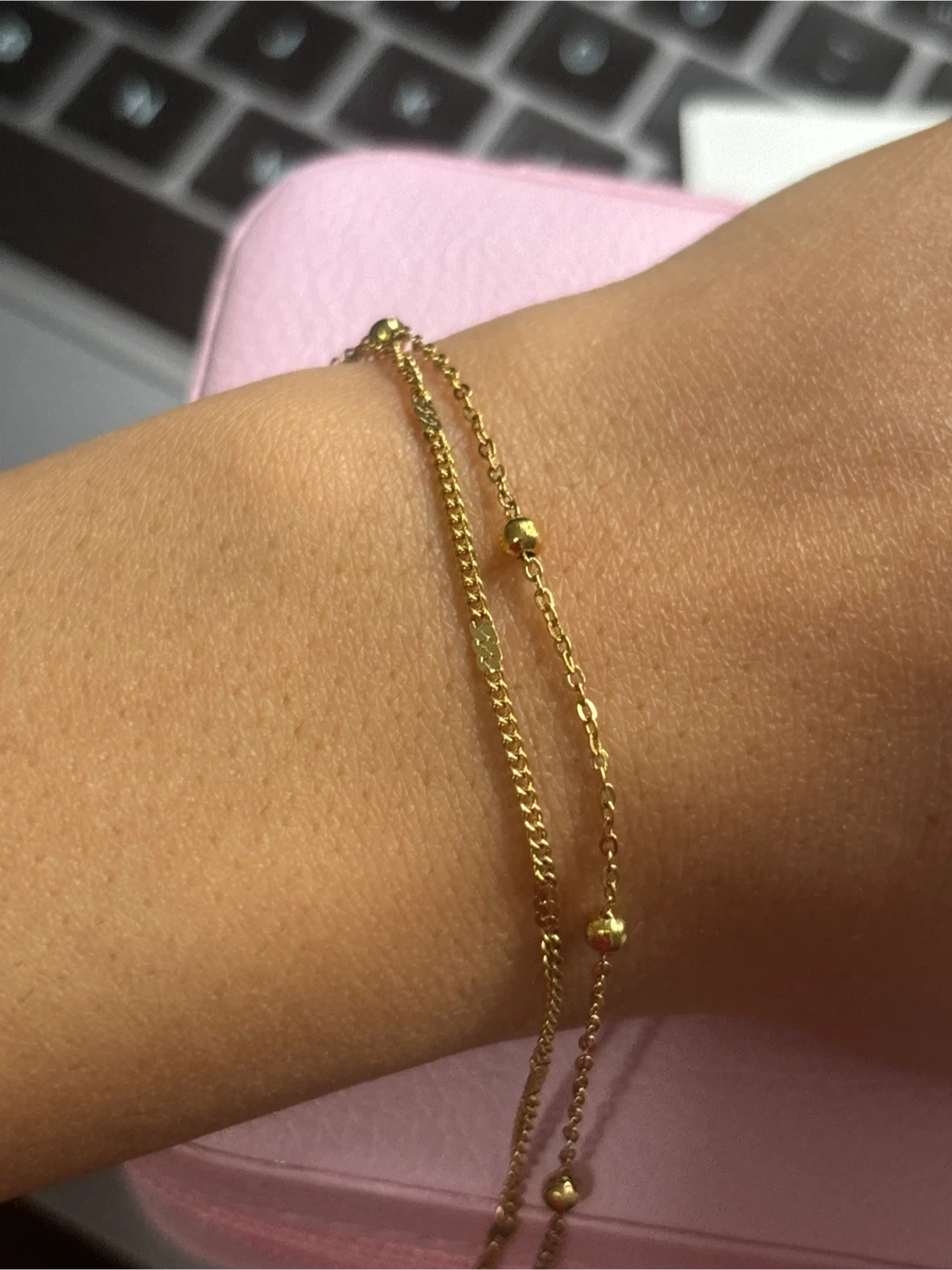 18k gold plated waterproof Double Chain Gold Bracelet with Beads