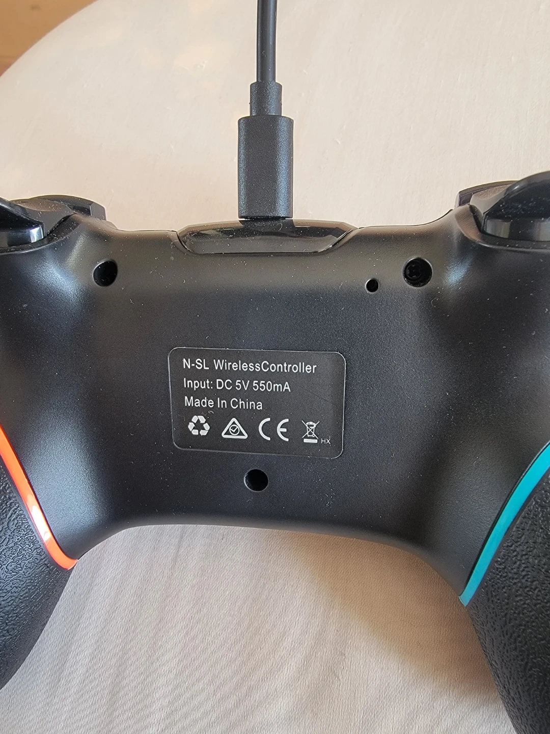 Wired controller for gaming. Features analogue sticks, D-pad, and standard buttons. Input is DC 5V 550mA. This controller connects via USB.