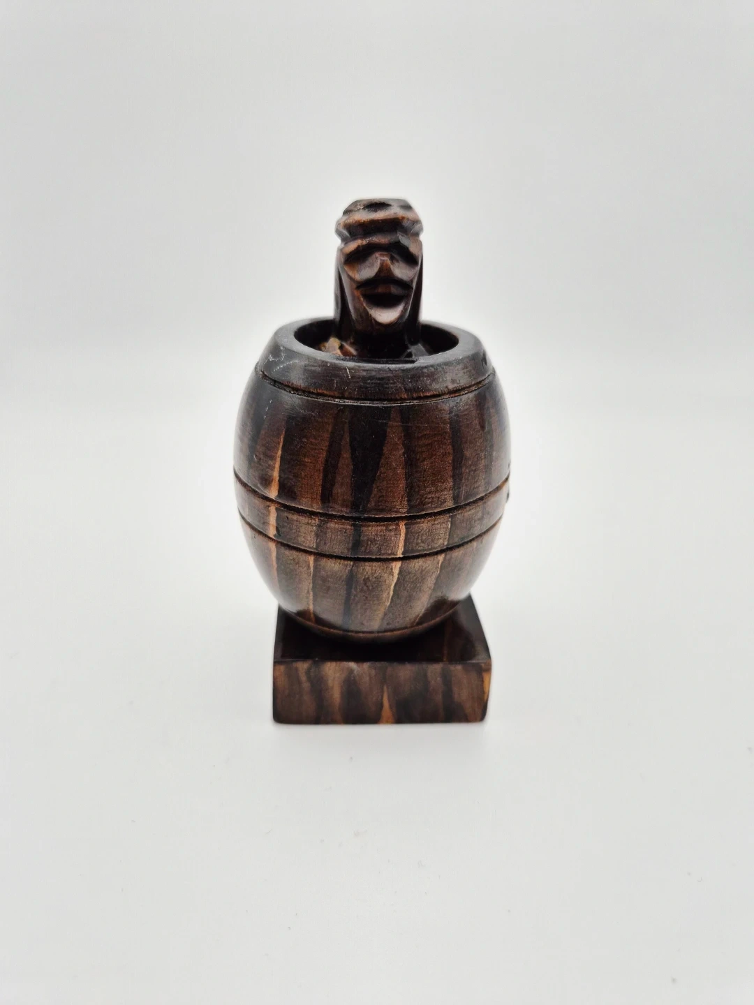 🤣 Wooden Barrel Shaped Container and Figurine