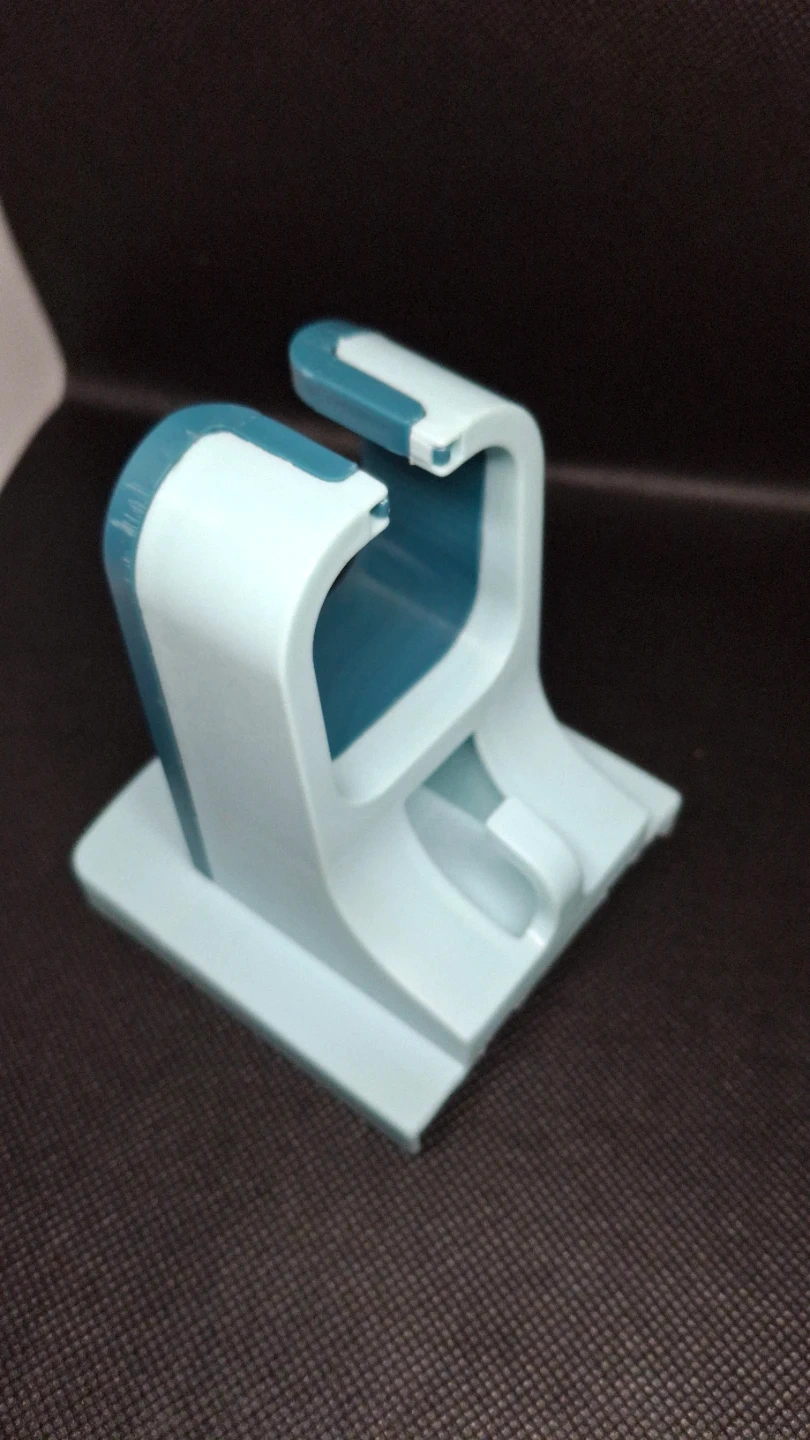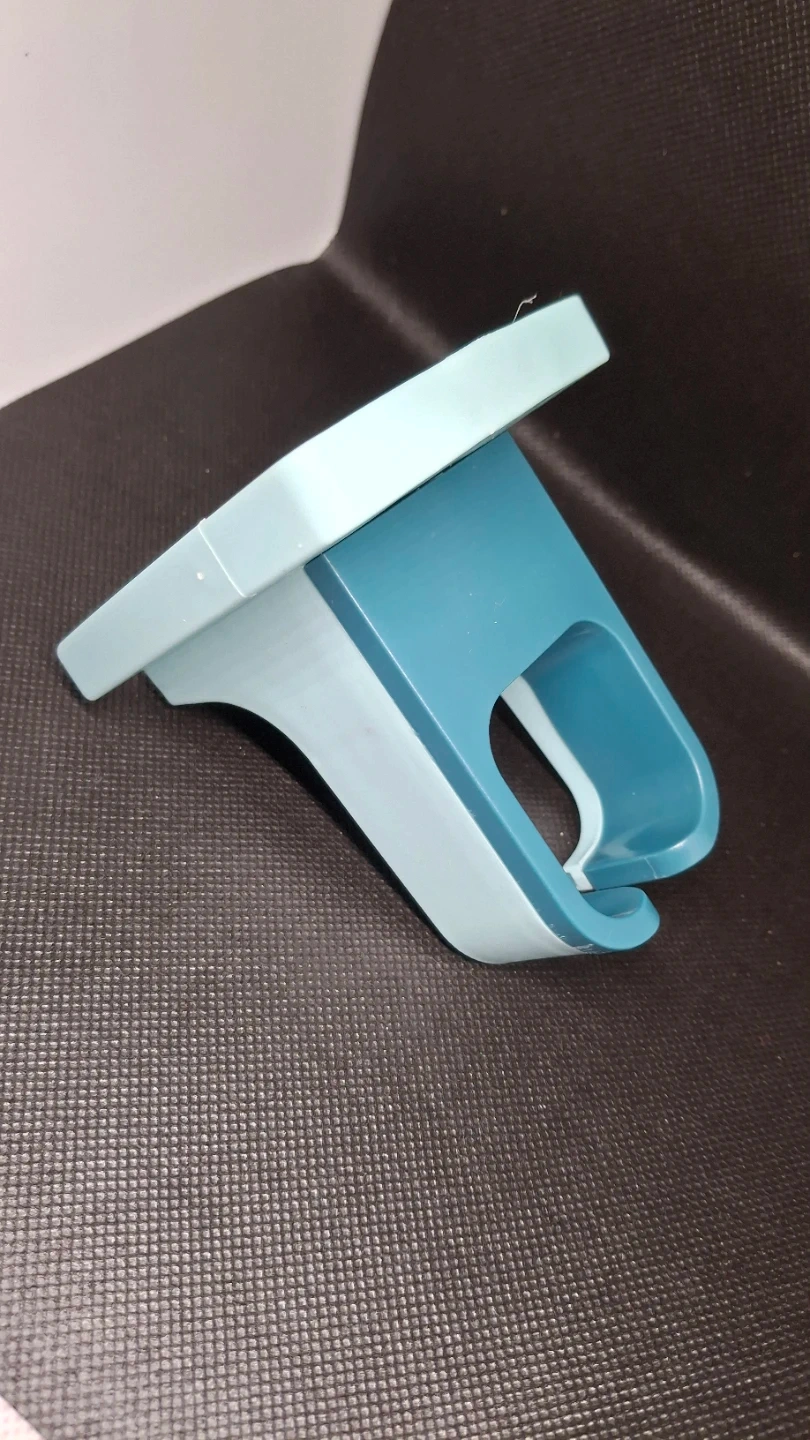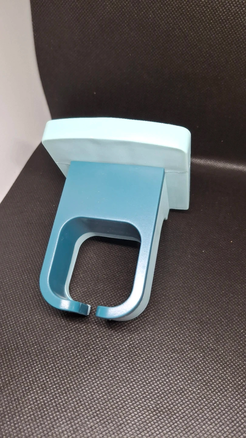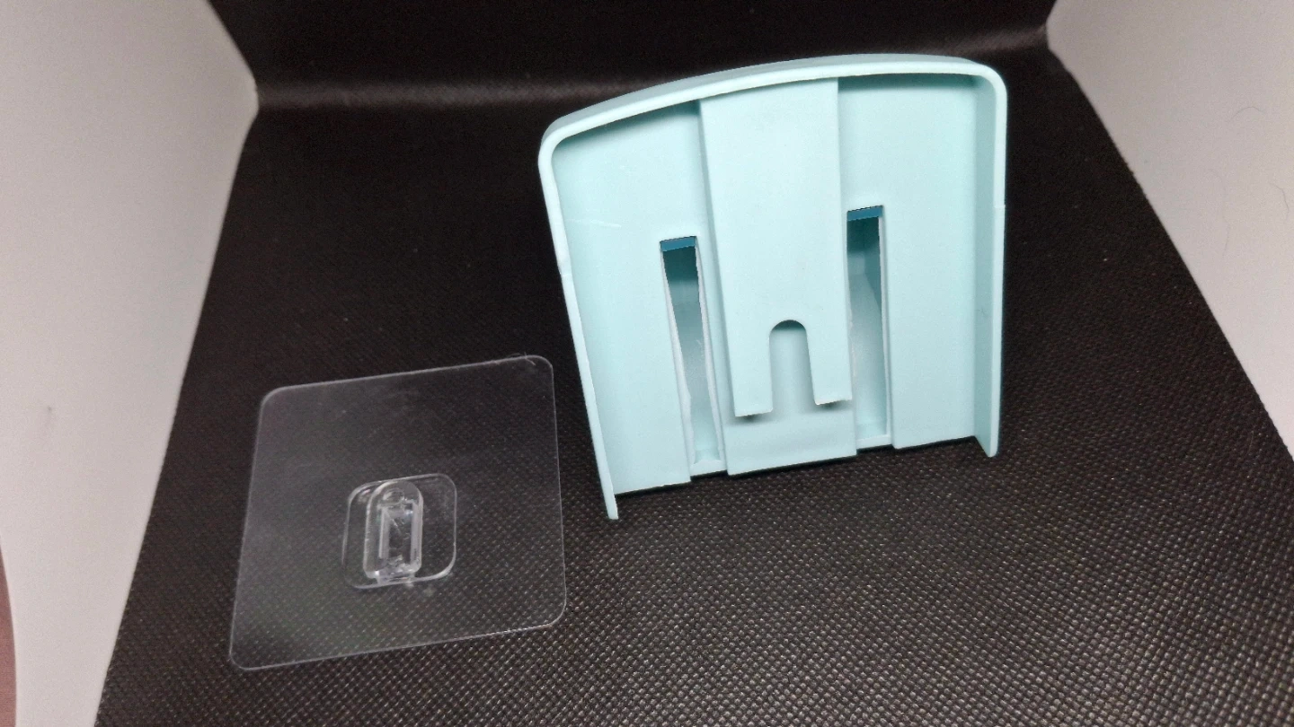 A light blue plastic wall mount holder. It comes with an adhesive strip for easy mounting. This holder is suitable for storing items in your bathroom or kitchen.