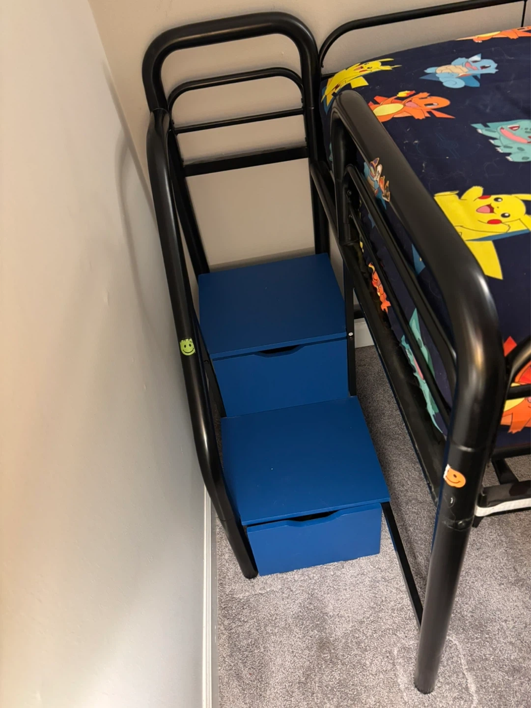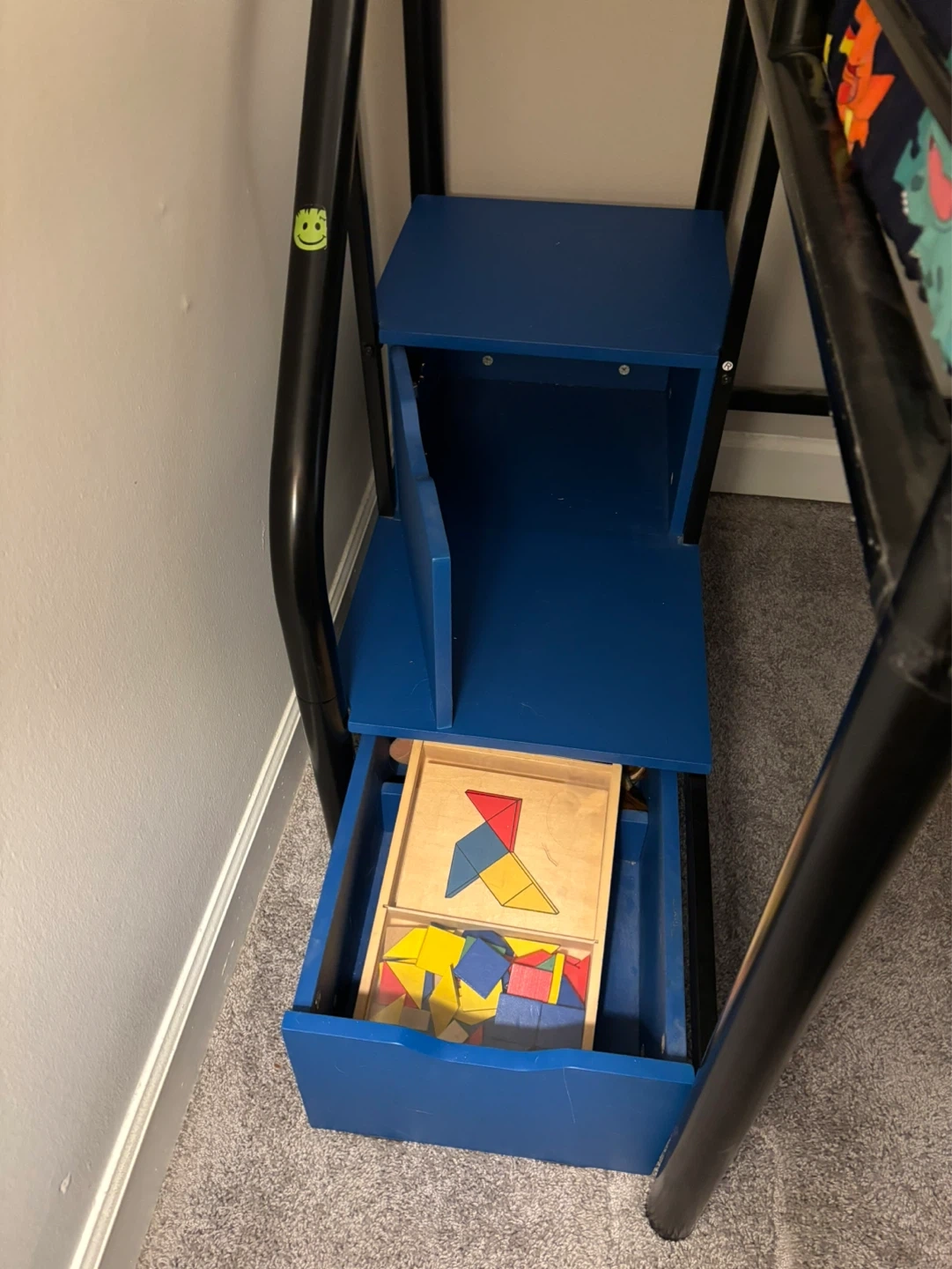 Buy & SellBlue Half Loft Bed with Storage StepsBlue Half Loft Bed with Storage Steps$120This is a blue half loft bed with built-in storage steps. Mattress NOT included. Great for a child's room!ConditionLike newAge3-8 yearsWHERE TO MEETCheck LocationView MapSELLERverifiedKateWheaton650 reviews0 chats·0 favorites·4 viewsSEND CHAT TO SELLERHi Kate! I’m interested in your listing.Hi Kate! I’m interested in your listing.Get the Karrot app to chatSign In to chat