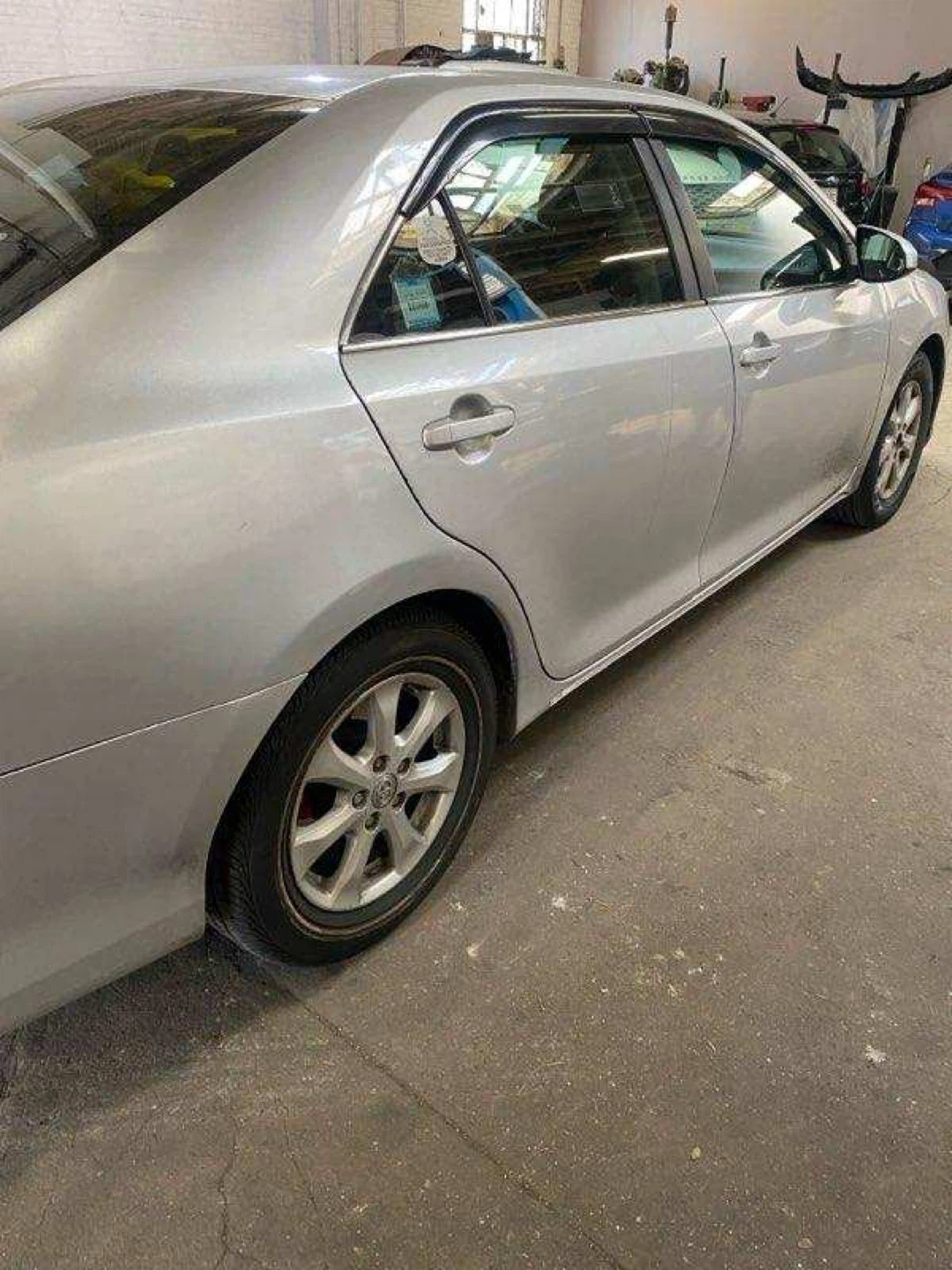 This is a silver Toyota Camry sedan. It's a 4-door car. The exterior looks clean.
