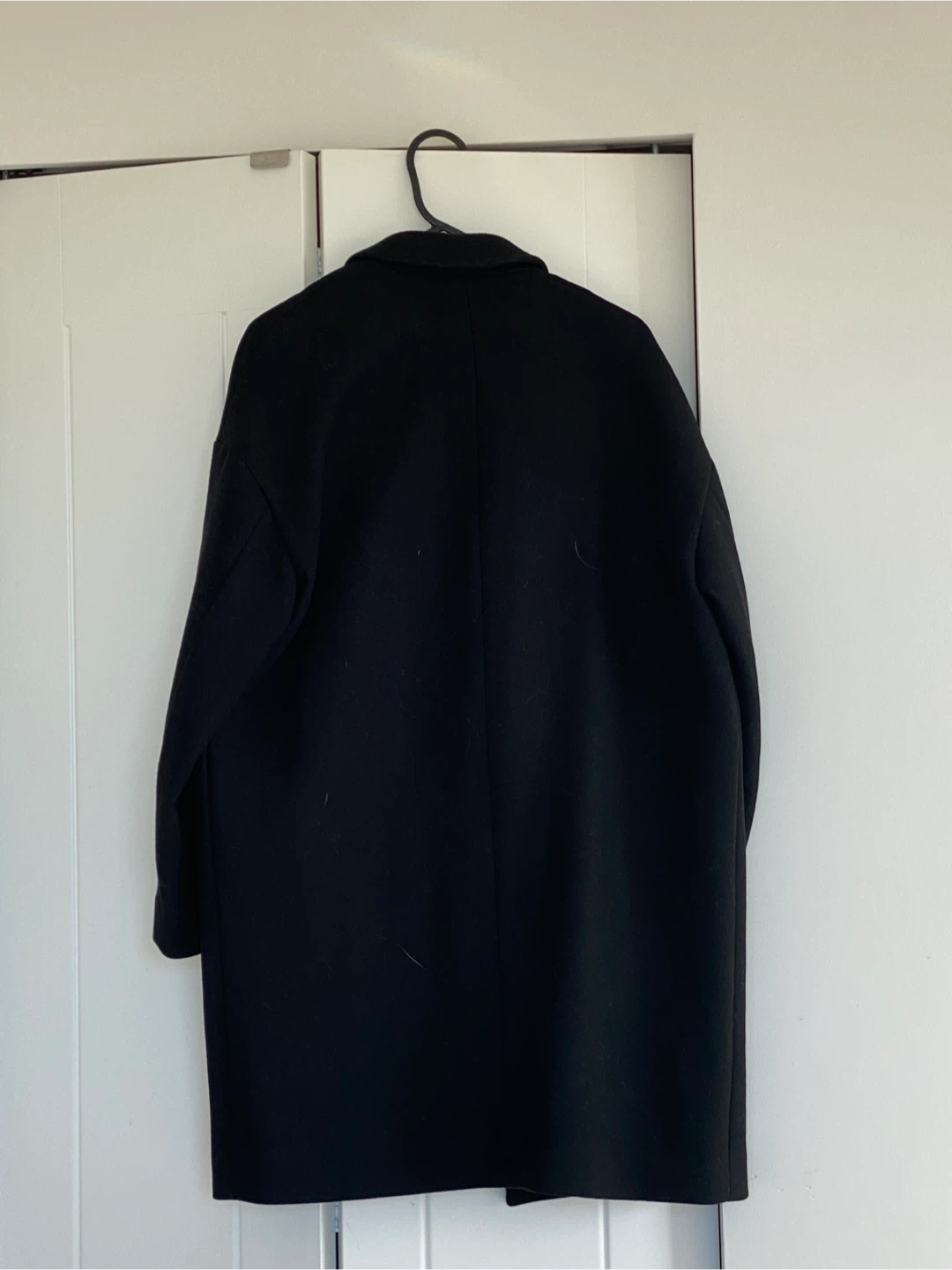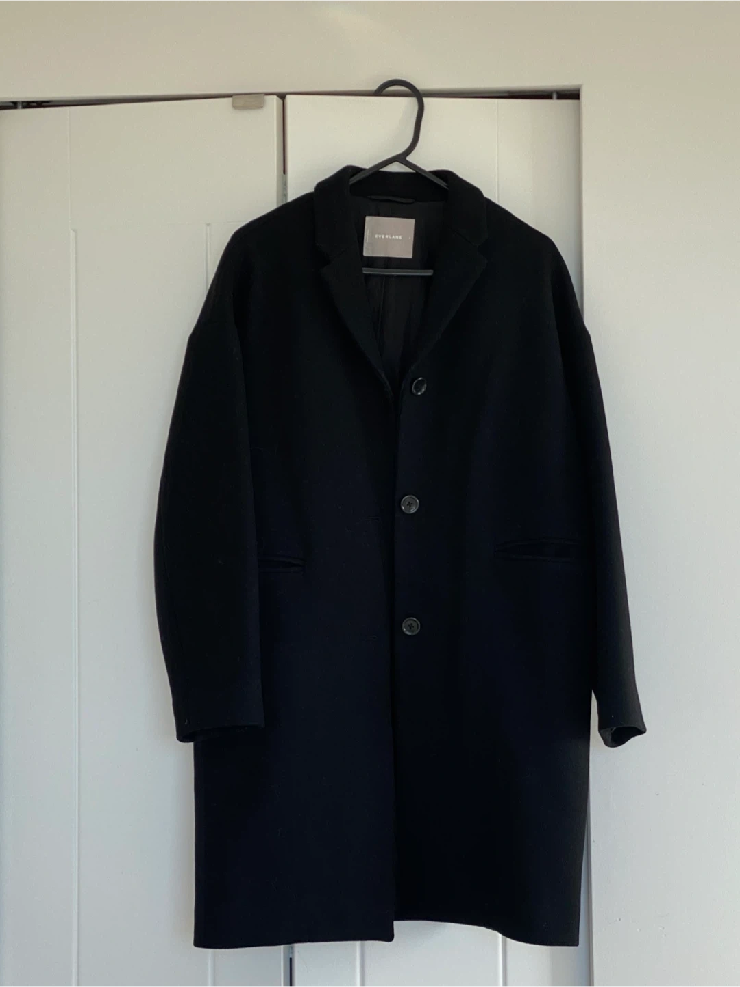 This is an mint condition Everlane black coat. It's a size 2. The coat has a classic button-up front and a notched lapel. It's perfect for cooler weather!