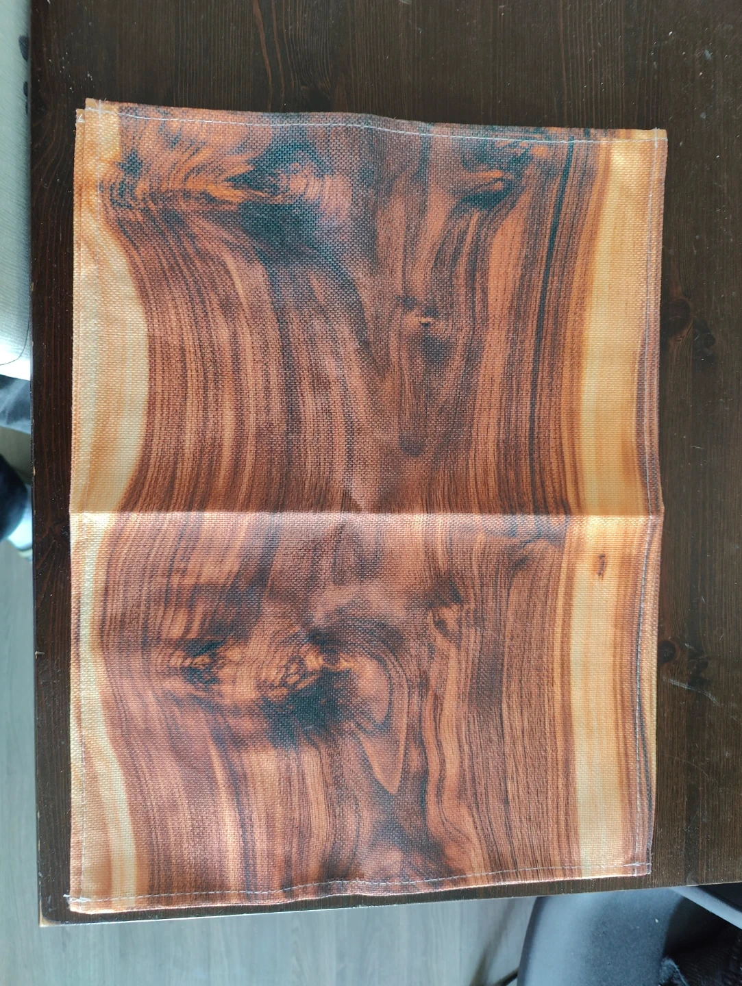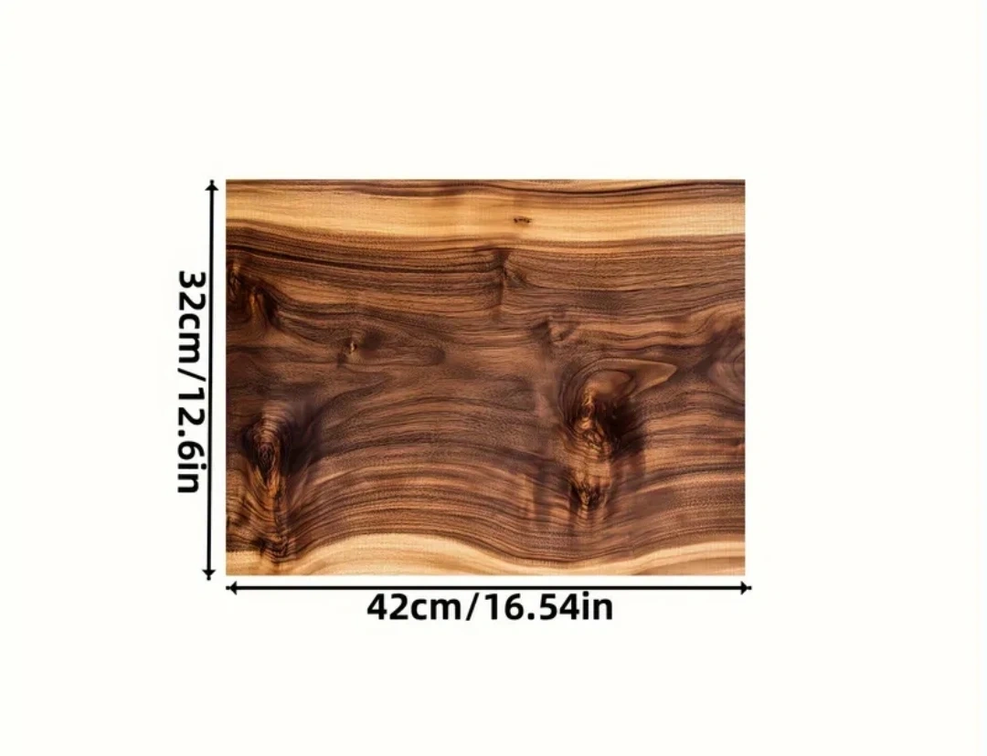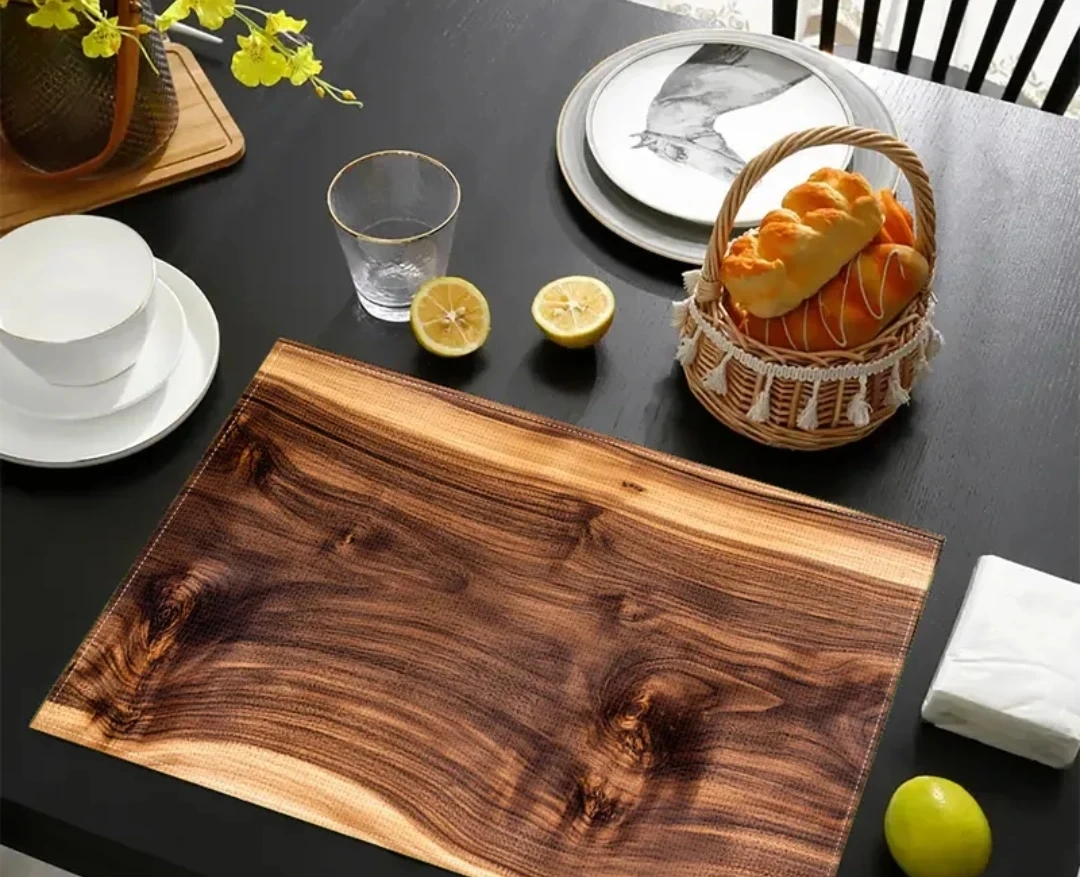 These placemats have a realistic wood grain print. They're made of a durable fabric material. Each placemat measures 42cm x 32cm (16.54in x 12.6in). Great for everyday use!