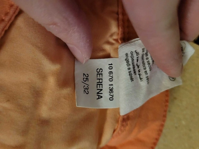 These are a pair of gently worn Mavi Jeans Serena in size 25/32. The jeans are a stylish coral colour and made from 98% cotton and 2% elastane for a comfortable fit. There are no significant flaws. Add a vibrant touch to your wardrobe with these Mavi Jeans!