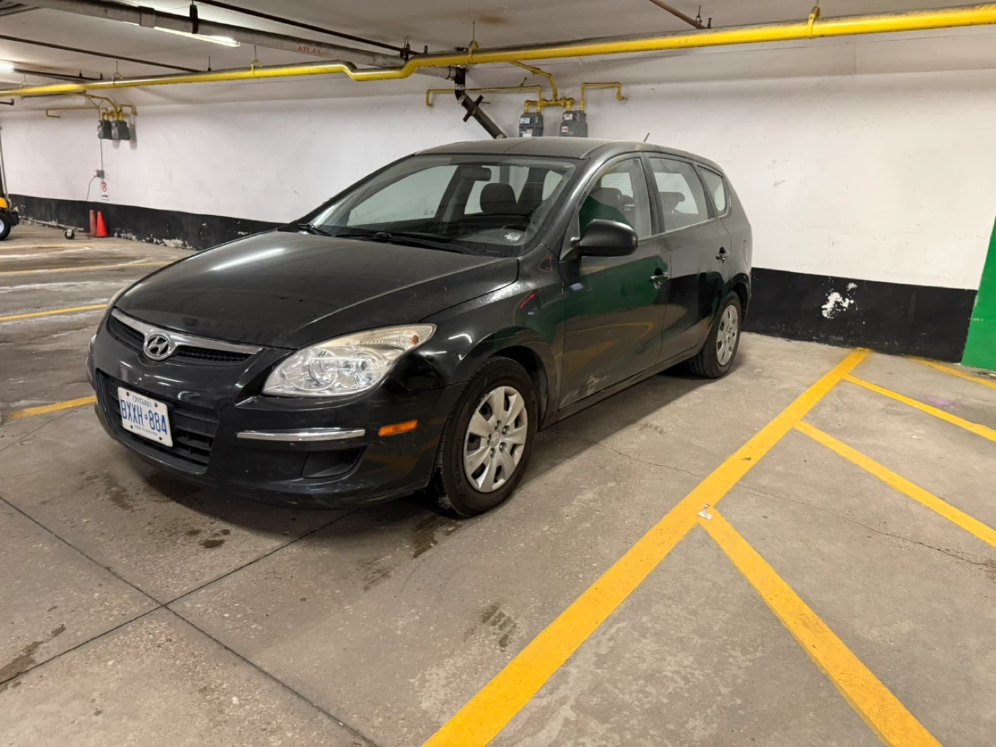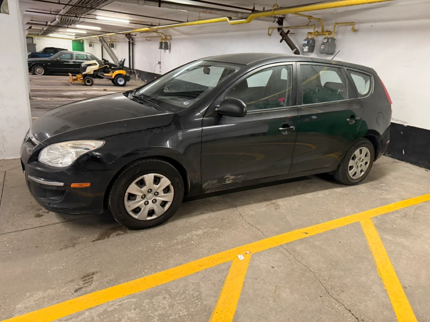 This is a black Hyundai Elantra Touring wagon. It's a practical vehicle with good cargo space. This car is ready for its next adventure!