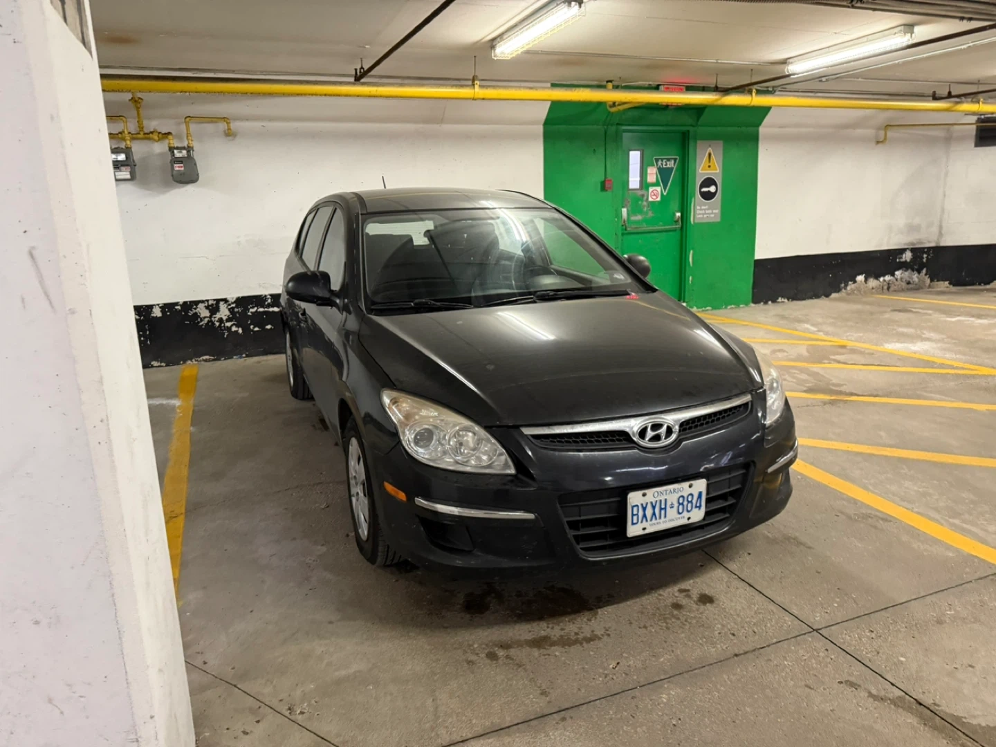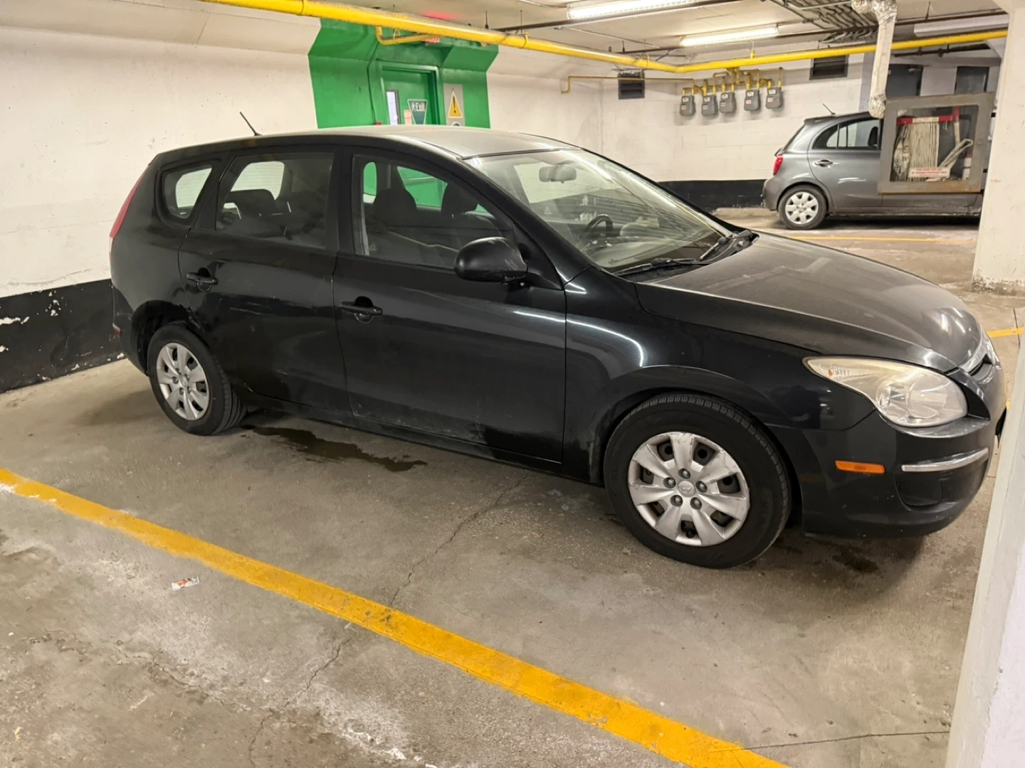 This is a black Hyundai Elantra Touring wagon. It's a practical vehicle with good cargo space. This car is ready for its next adventure!