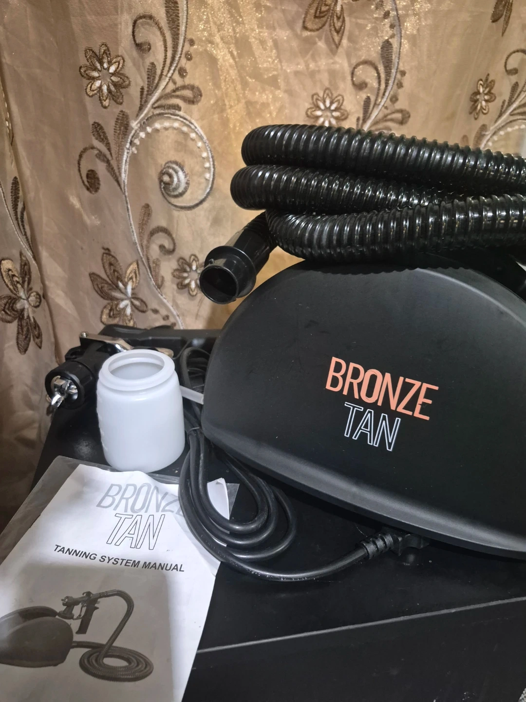 This is a Bronze Tan tanning system. It includes the main unit, a spray gun, and a hose. The manual is also included. Perfect for at-home spray tans!