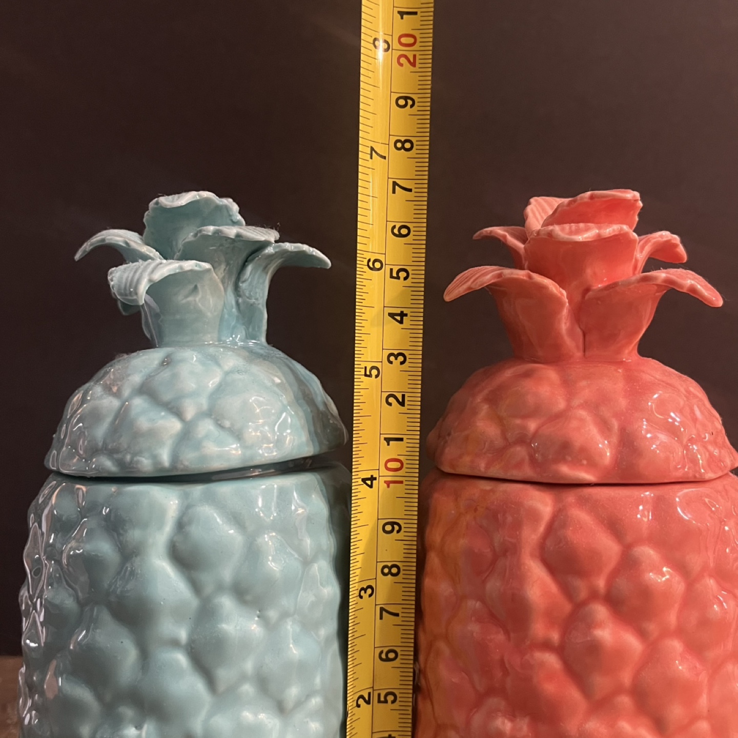 1 / 41 / 4Buy & SellPair of Pineapple Jars - Teal & CoralPair of Pineapple Jars - Teal & Coral$20Set of 2 Adorable pair of ceramic pineapple jars. Teal and coral colours. Perfect for storing treats or trinkets. Like new. Sealed lids. $20 firmConditionLike newWHERE TO MEETCheck LocationView MapSELLERverifiedAmethystKensington1103 reviews0 chats·0 favorites·22 viewsSEND CHAT TO SELLERHi Amethyst! I’m interested in your listing.Hi Amethyst! I’m interested in your listing.Get the Karrot app to chatSign In to chat