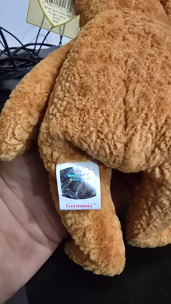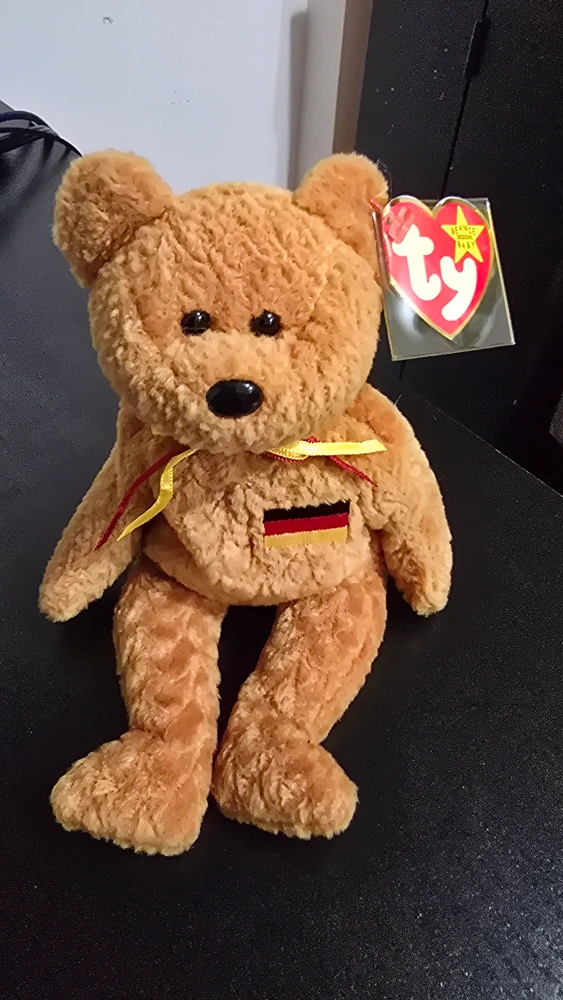 Selling a Ty Beanie Baby called Germania! It's in great condition and comes with its original tag. This adorable bear is part of the Beanie Babies Collection and features a German flag ribbon. A sweet addition to any collection!