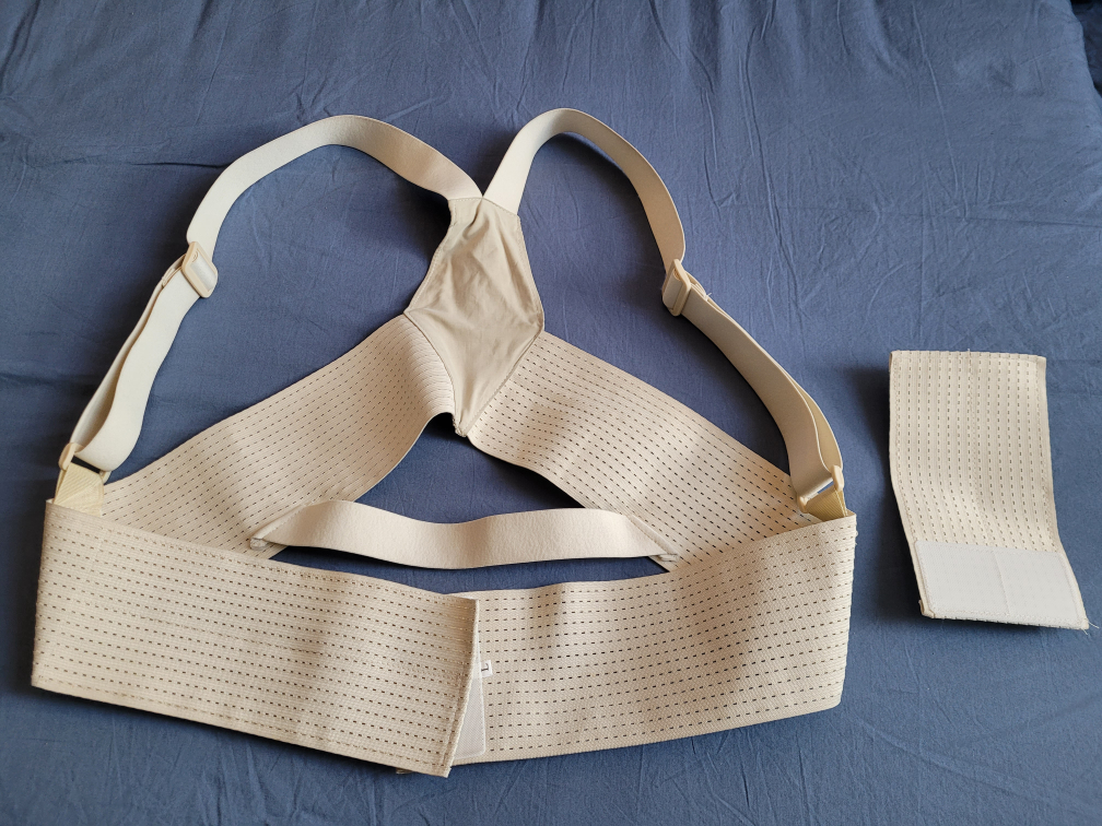 Pregnancy support belt with shoulder straps. Comes with an extender piece. Size -large.