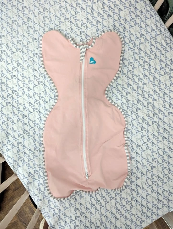 Great condition Love to Dream Swaddle Up Original in dusty pink, size newborn, 1.0 TOG. Arms-up design helps babies self-soothe. Two-way zipper for easy diaper changes. Soft cotton with stretch. From a clean, smoke-free home. No stains or damage.