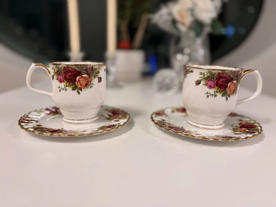 Buy & SellRoyal Albert Old Country Roses Footed MugRoyal Albert Old Country Roses Footed Mug$181 footed mug + 1 dessert plate = $18 per set. $35 for 2 sets. Made in England. In excellent vintage condition, no cracks, chips or crazing.WHERE TO MEETCheck LocationView MapSELLERverifiedAppleCentral City973 reviews0 chats·0 favorites·3 viewsSEND CHAT TO SELLERHi Apple! I’m interested in your listing.Hi Apple! I’m interested in your listing.Get the Karrot app to chatSign In to chat