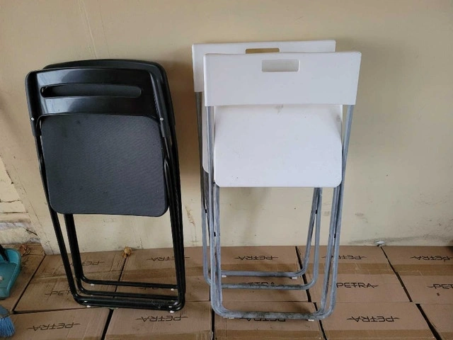 These folding chairs are perfect for extra seating when you have guests or for any event! They're used but still in good condition and ready to serve their purpose. I'm asking $15 each. If the ad's still up, yes, they're available!