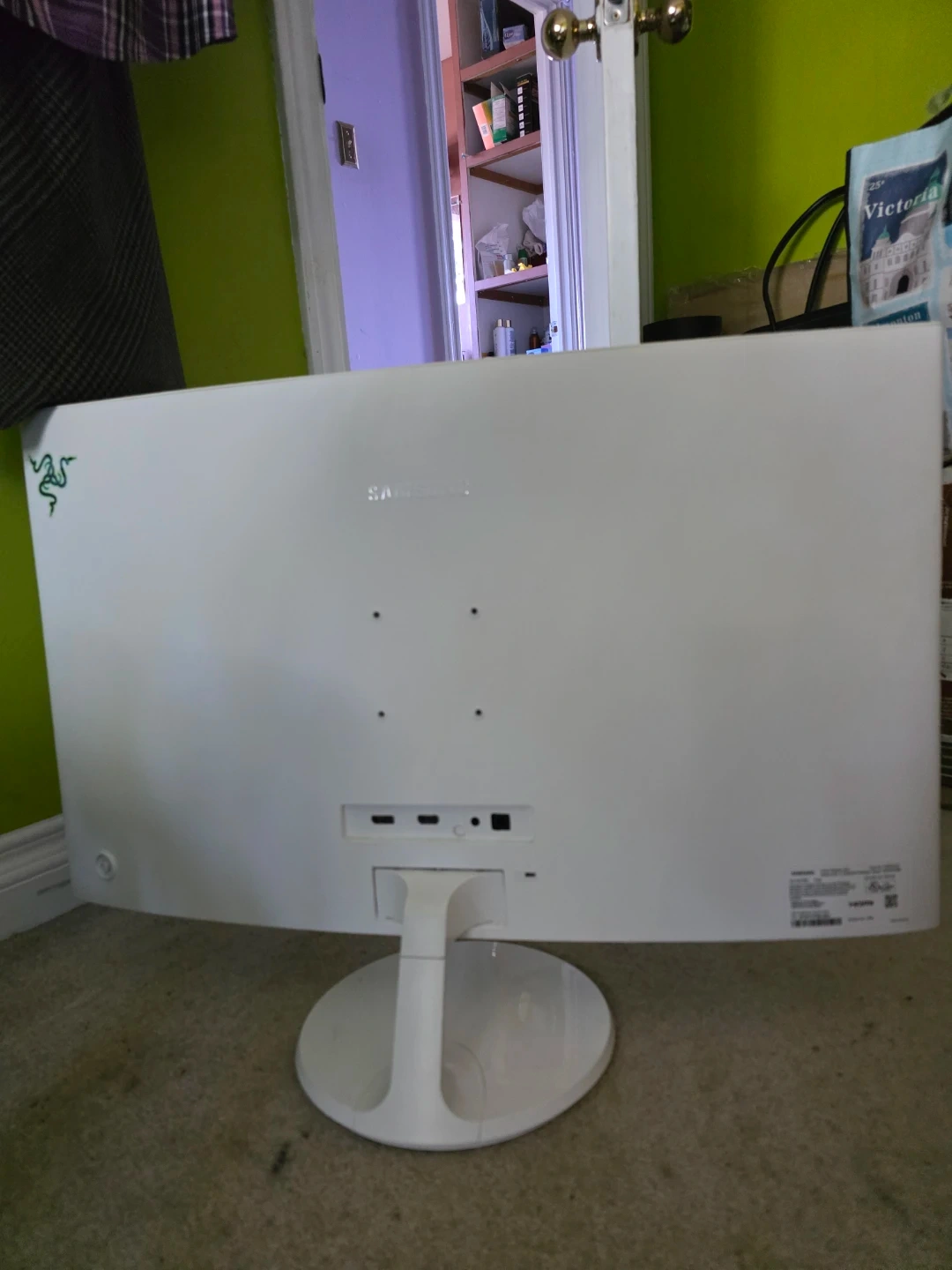 White Samsung C32F391FWN 32-inch curved monitor. Model code LC32F391FWNXZA. Manufactured August 2018. It's a 1920x1080p monitor.