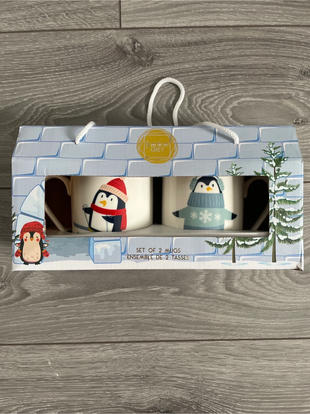 This is a set of two mugs from Frankie Grey featuring cute penguins. They're perfect for enjoying your favourite hot beverages during the winter season!