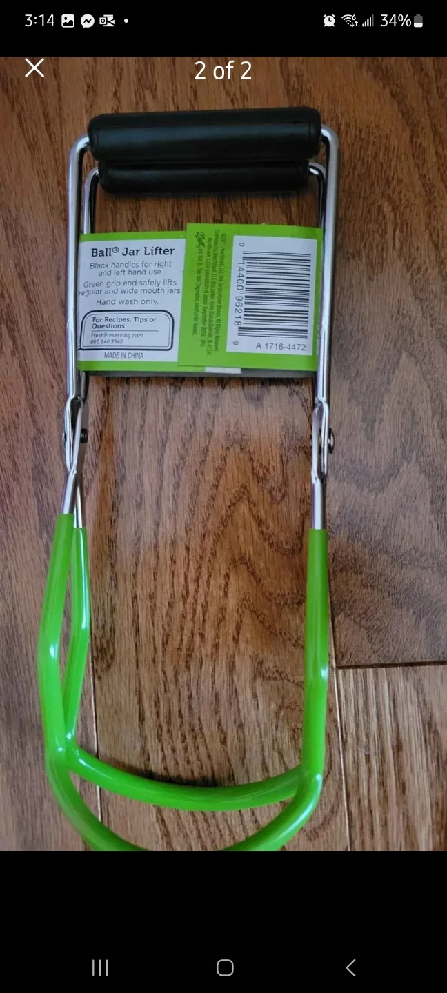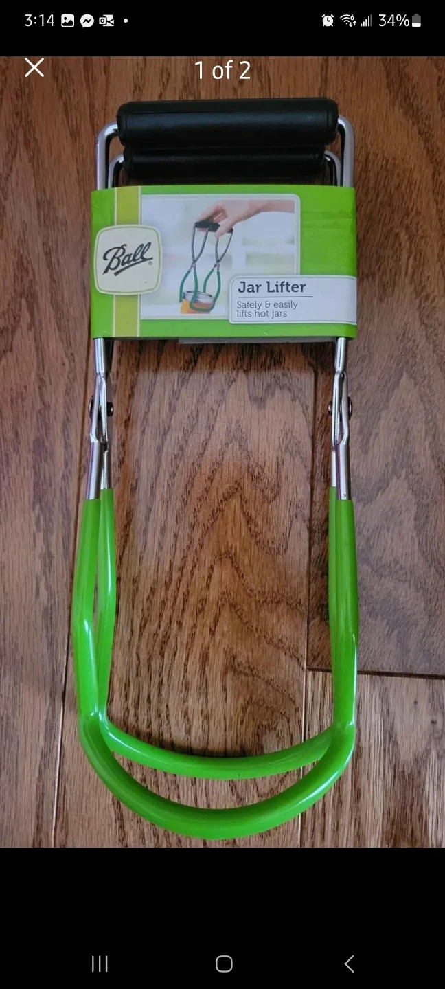 This is a Ball jar lifter. It's designed for safe and easy lifting of hot jars. The grippers are made for regular mouth jars and it comes with green handles.