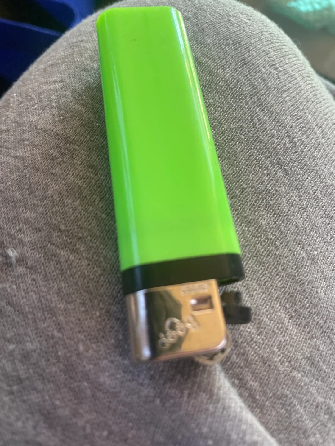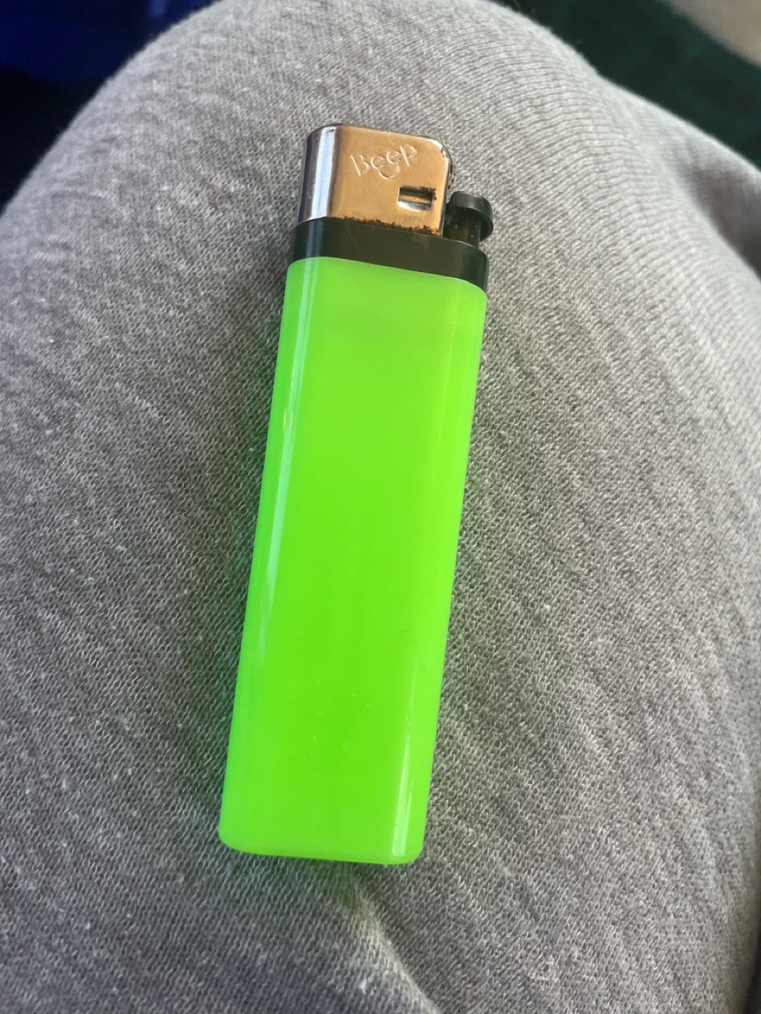 Standard size Bic lighter in a bright neon green colour. It's a disposable lighter.