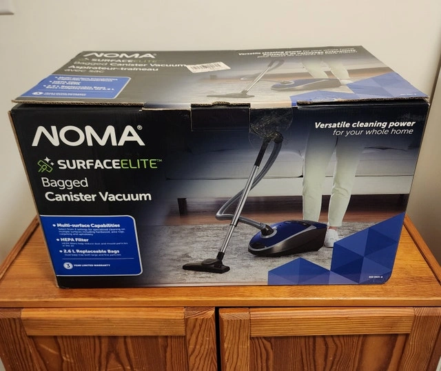 Used only twice. This NOMA SurfaceElite Multi-Surface Bagged Corded Canister Vacuum features a 2.6 L replaceable dirt bag for mess-free vacuuming. With multi-surface suction settings on the floor head, you can easily vacuum a wide range of surfaces with one device – simply switch the specialized settings between hardwood, area rugs, carpeting, and upholstery based on the surface you are cleaning. For easy maintenance, this canister vacuum also includes a washable filter. Condition: Used - Like new. Payment: Cashless payment accepted.