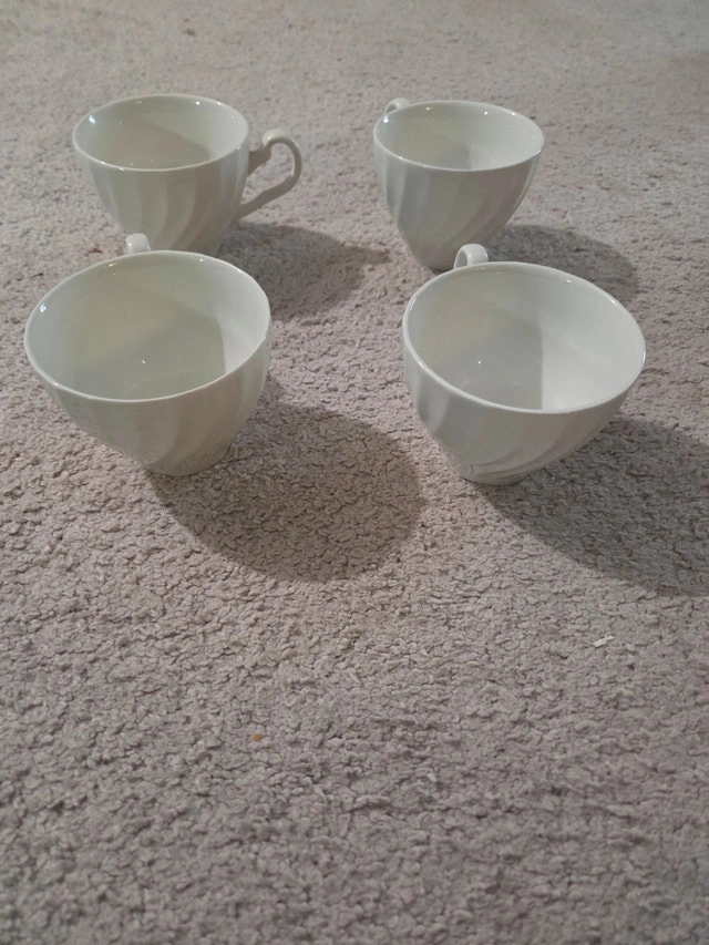 Vintage Johnson Brothers Regency White Swirl Teacups - Set of 4