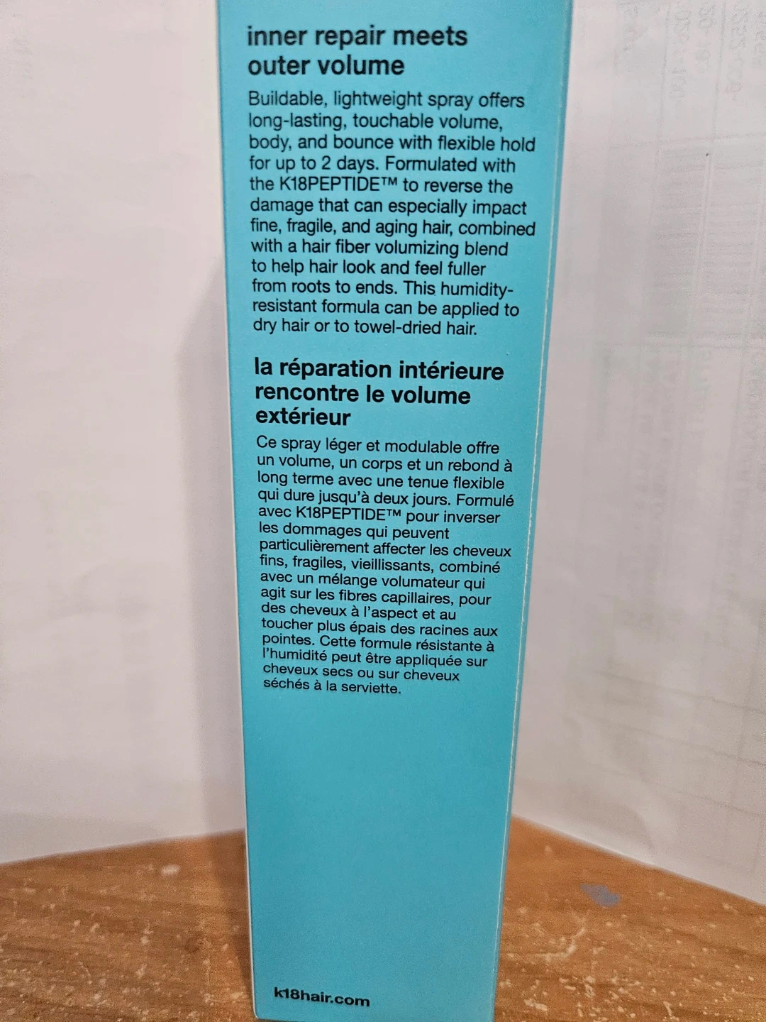 I'm selling a K18 AstroLift reparative volume spray! This buildable, lightweight spray offers long-lasting volume, body, and bounce with flexible hold for up to 2 days. The bottle contains 118 ml / 4 fl oz liq. It's formulated with K18PEPTIDE to reverse the damage that can especially impact fine, fragile, and aging hair. It's combined with a hair fiber volumizing blend to help hair look and feel fuller from roots to ends. This humidity-resistant formula can be applied to dry hair or towel-dried hair