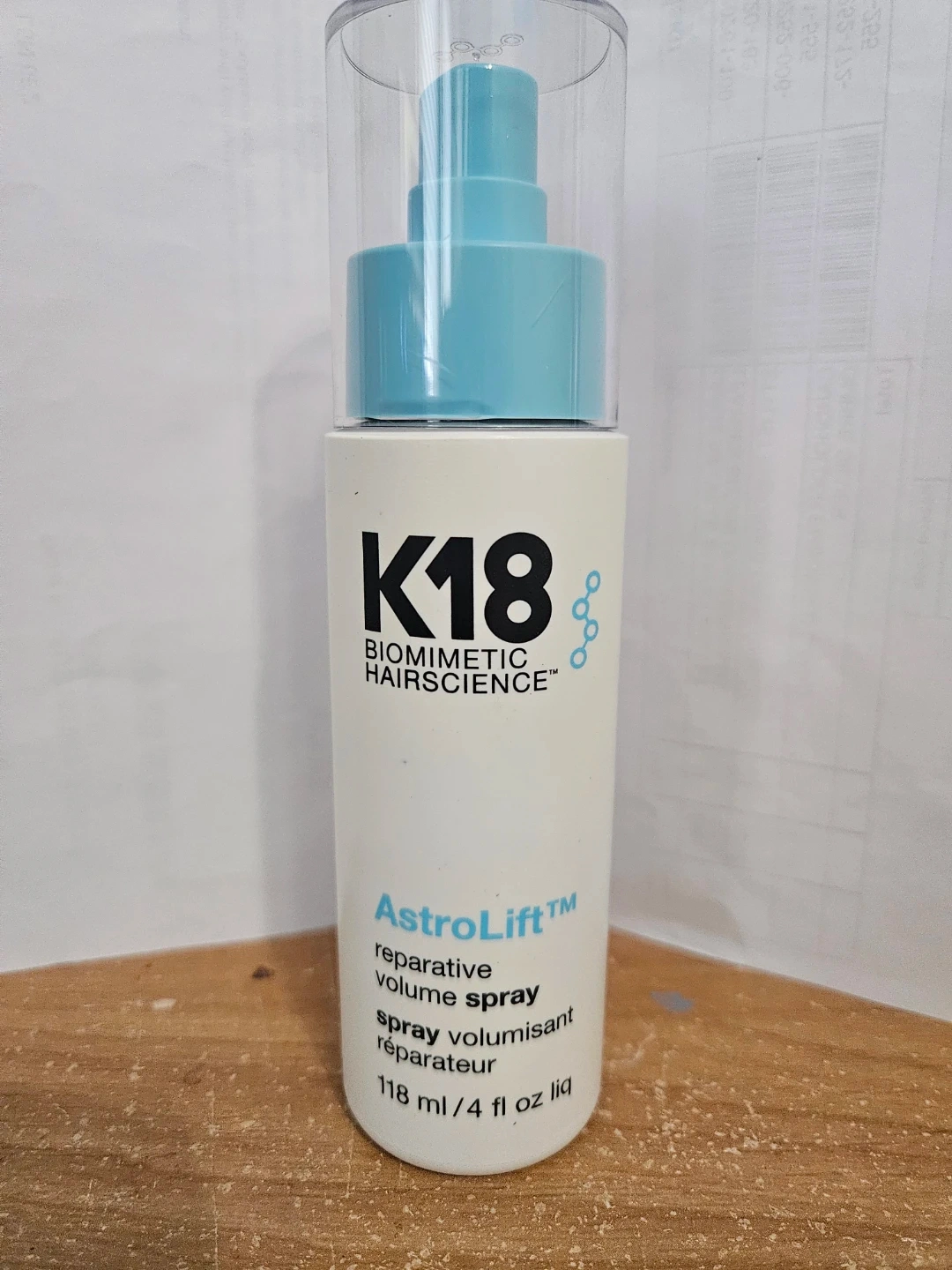 I'm selling a K18 AstroLift reparative volume spray! This buildable, lightweight spray offers long-lasting volume, body, and bounce with flexible hold for up to 2 days. The bottle contains 118 ml / 4 fl oz liq. It's formulated with K18PEPTIDE to reverse the damage that can especially impact fine, fragile, and aging hair. It's combined with a hair fiber volumizing blend to help hair look and feel fuller from roots to ends. This humidity-resistant formula can be applied to dry hair or towel-dried hair