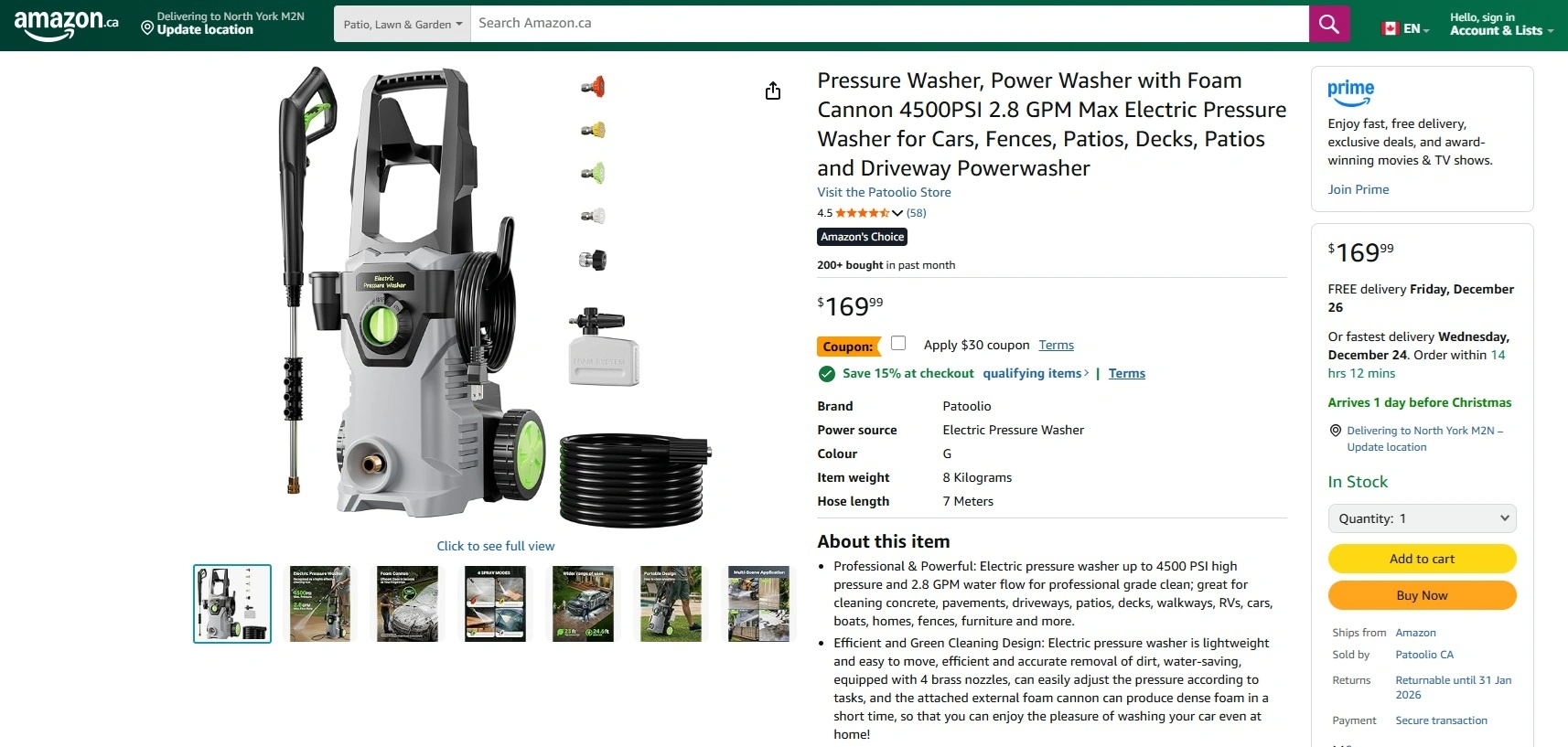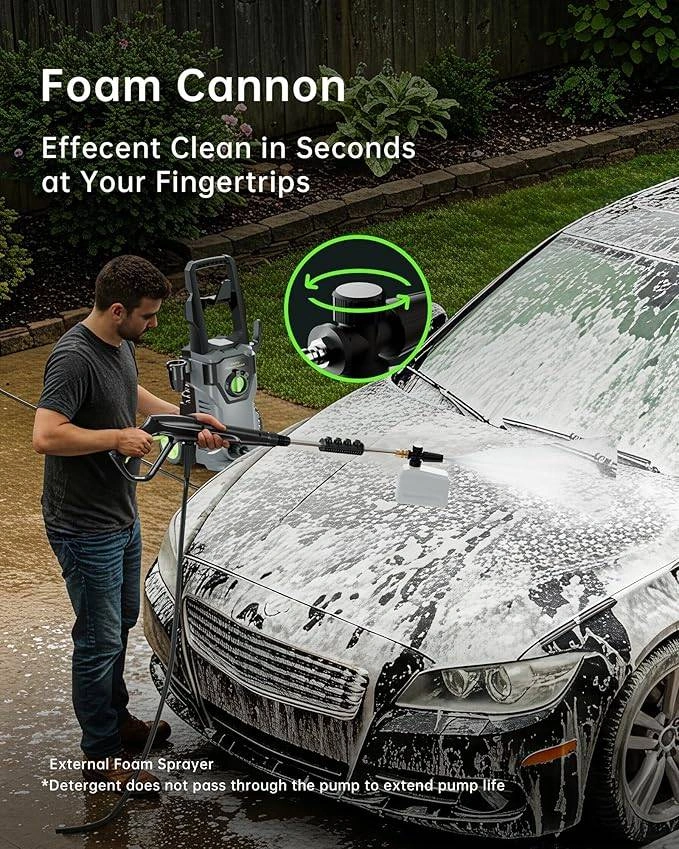 Description: Pressure Washer, 4500PSI 2.8 GPM Max Power Washer with Foam Cannon Electric Pressure Washer 48FT for Cars, Fences, Patios, Decks, Patios and Driveway Powerwasher