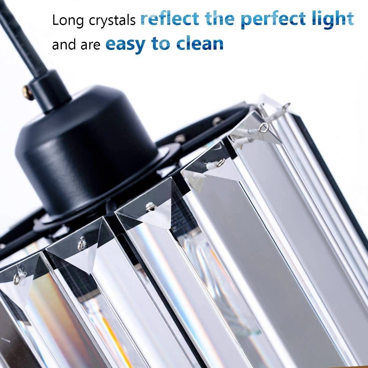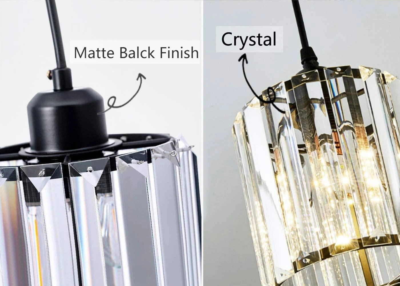Add a touch of elegance to your kitchen island, dining room, or bedroom with this modern mini crystal pendant light! It features a cylinder crystal pendant lighting fixture with a matte black finish. The adjustable length can reach a maximum of 47.24 inches. Originally bought for $110