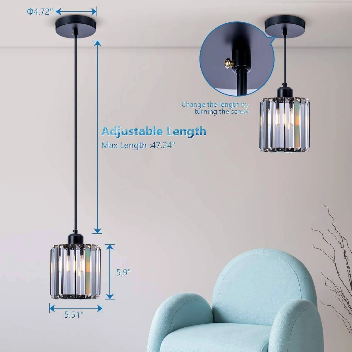 Add a touch of elegance to your kitchen island, dining room, or bedroom with this modern mini crystal pendant light! It features a cylinder crystal pendant lighting fixture with a matte black finish. The adjustable length can reach a maximum of 47.24 inches. Originally bought for $110