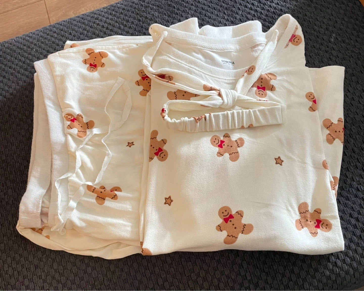Buy & SellNEW Sonoma Gingerbread 3 piece Pajama Set 3XLNEW Sonoma Gingerbread 3 piece Pajama Set 3XL$25Cozy long-sleeve pajama set with a gingerbread pattern. Includes matching headband. Cotton blend fabric. Brand new. Smoke free home.ConditionNewSize3XLBrandSonomaWHERE TO MEETFusilier DriveView MapSELLERverifiedDeeClairlea1000+212 reviews0 chats·0 favorites·4 viewsSEND CHAT TO SELLERHi Dee! I’m interested in your listing.Hi Dee! I’m interested in your listing.Get the Karrot app to chatSign In to chat
