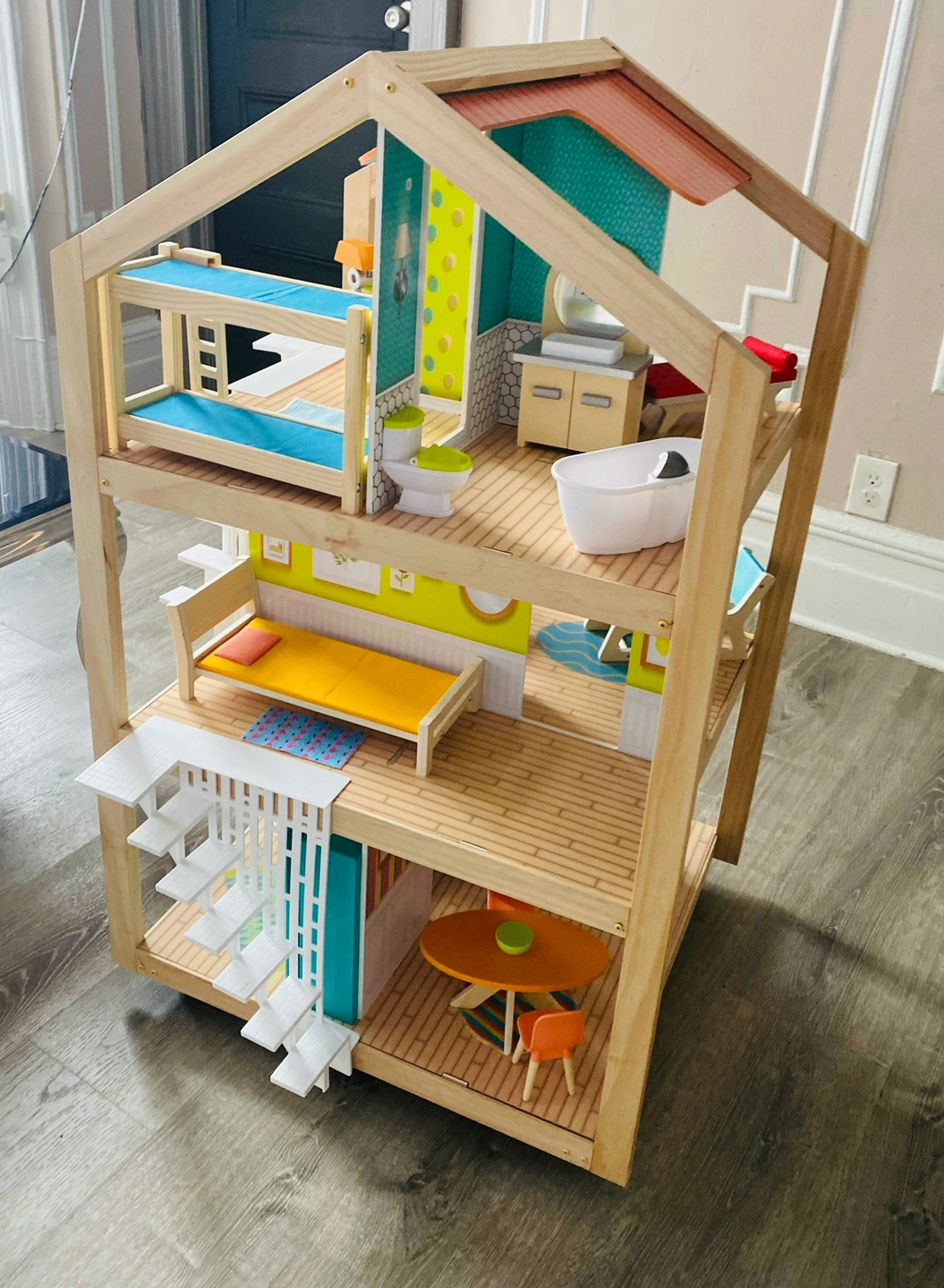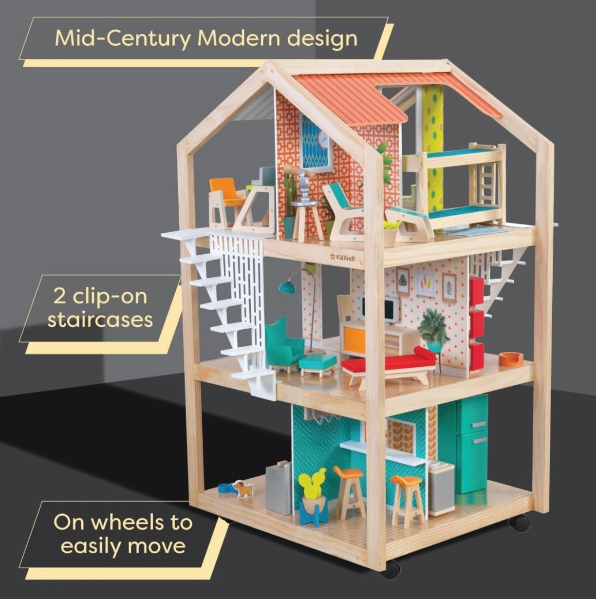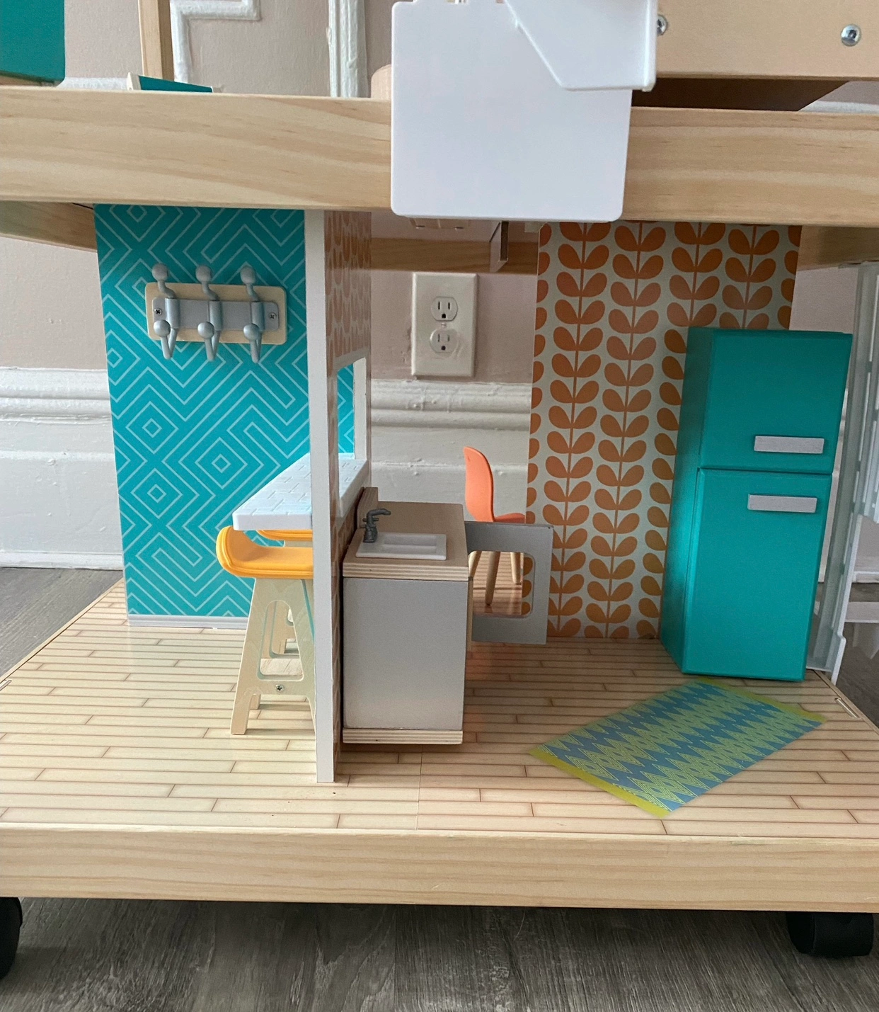 MID-CENTURY DESIGN: Full of bright bold colors and trendy patterns, this dollhouse has a mod style that really stands out.