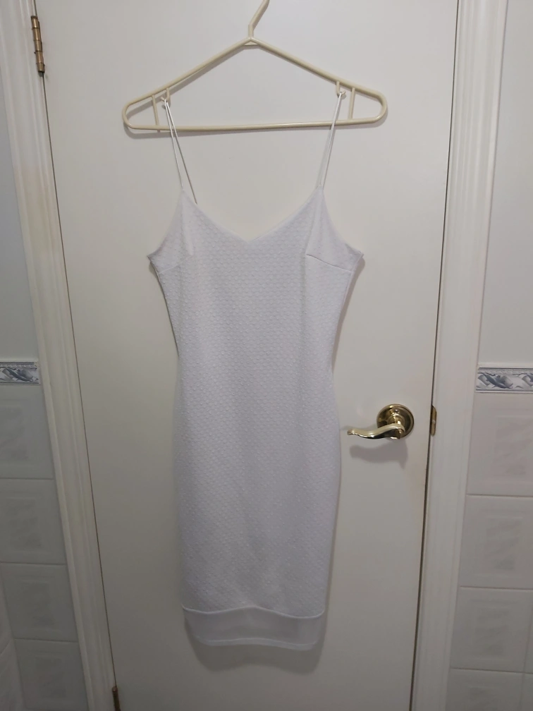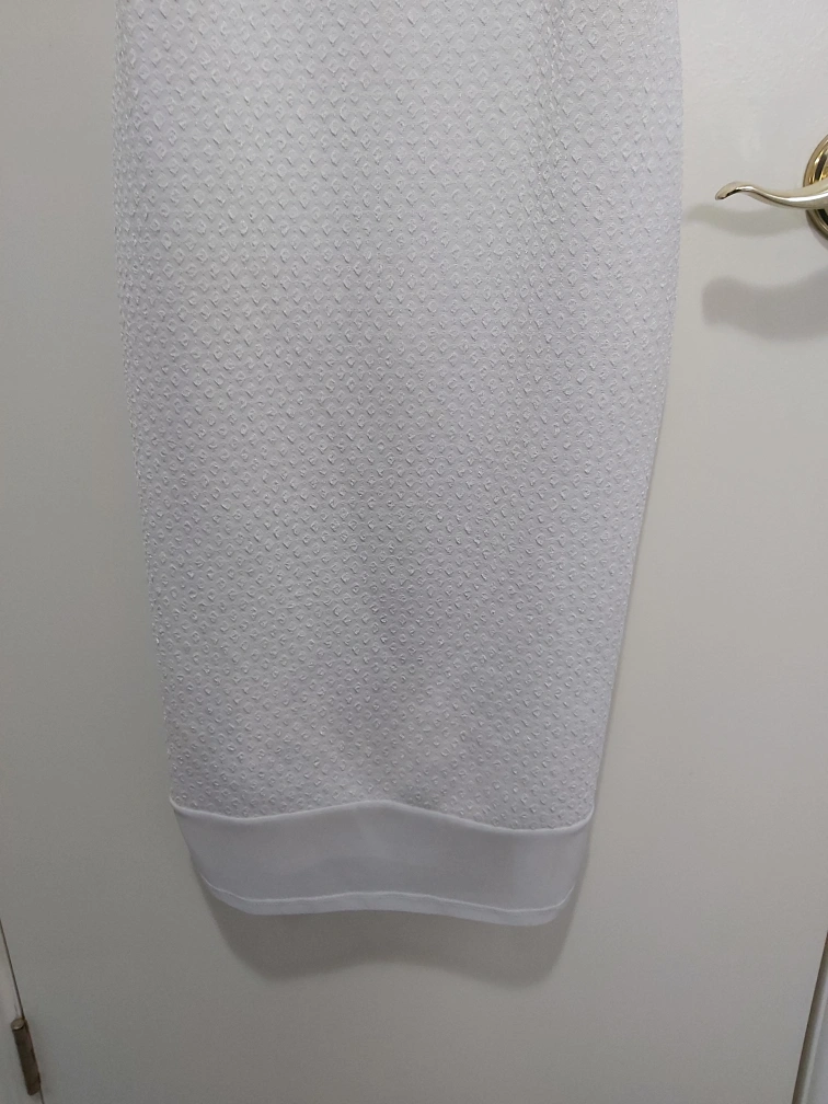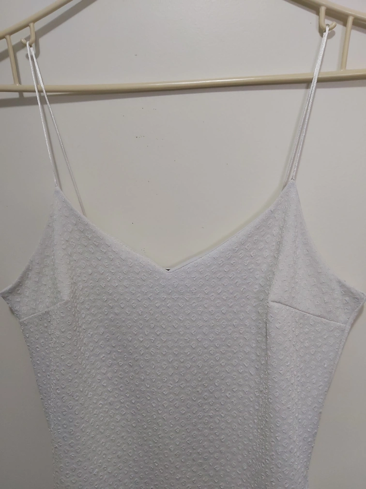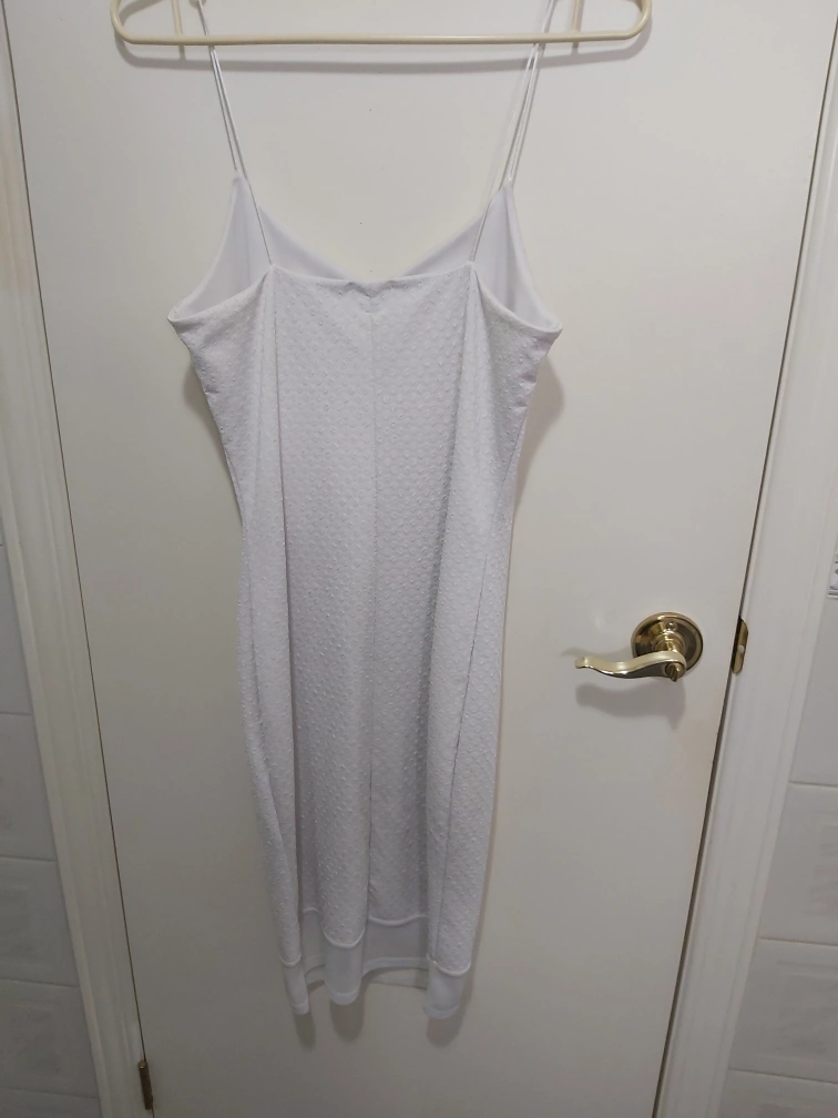 Type: Beautiful white textured dress with a sheer on the very bottom