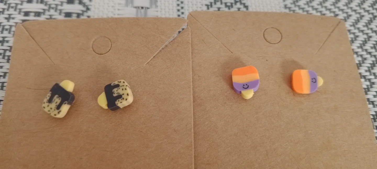 Adorable handmade earrings featuring fun fruit popsicle and ice cream cone designs. These earrings are perfect for adding a playful touch to any outfit. Great for summer days or anyone who loves sweet treats!