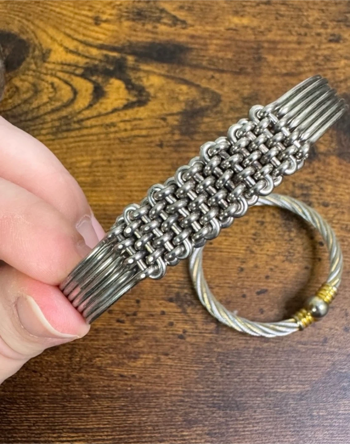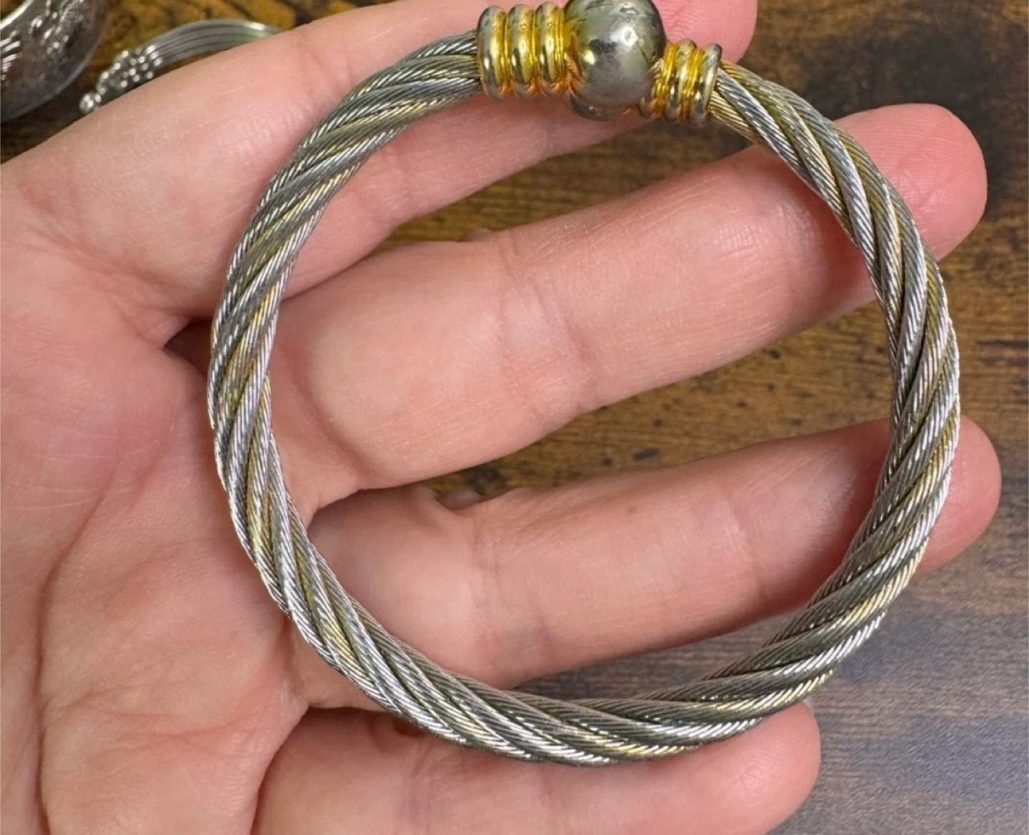 SILVER AND GOLD TONE WIRE CABLE & WOVEN BRACELETS
