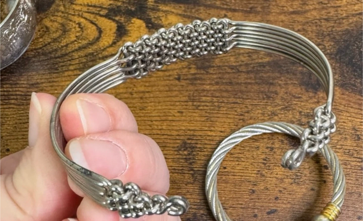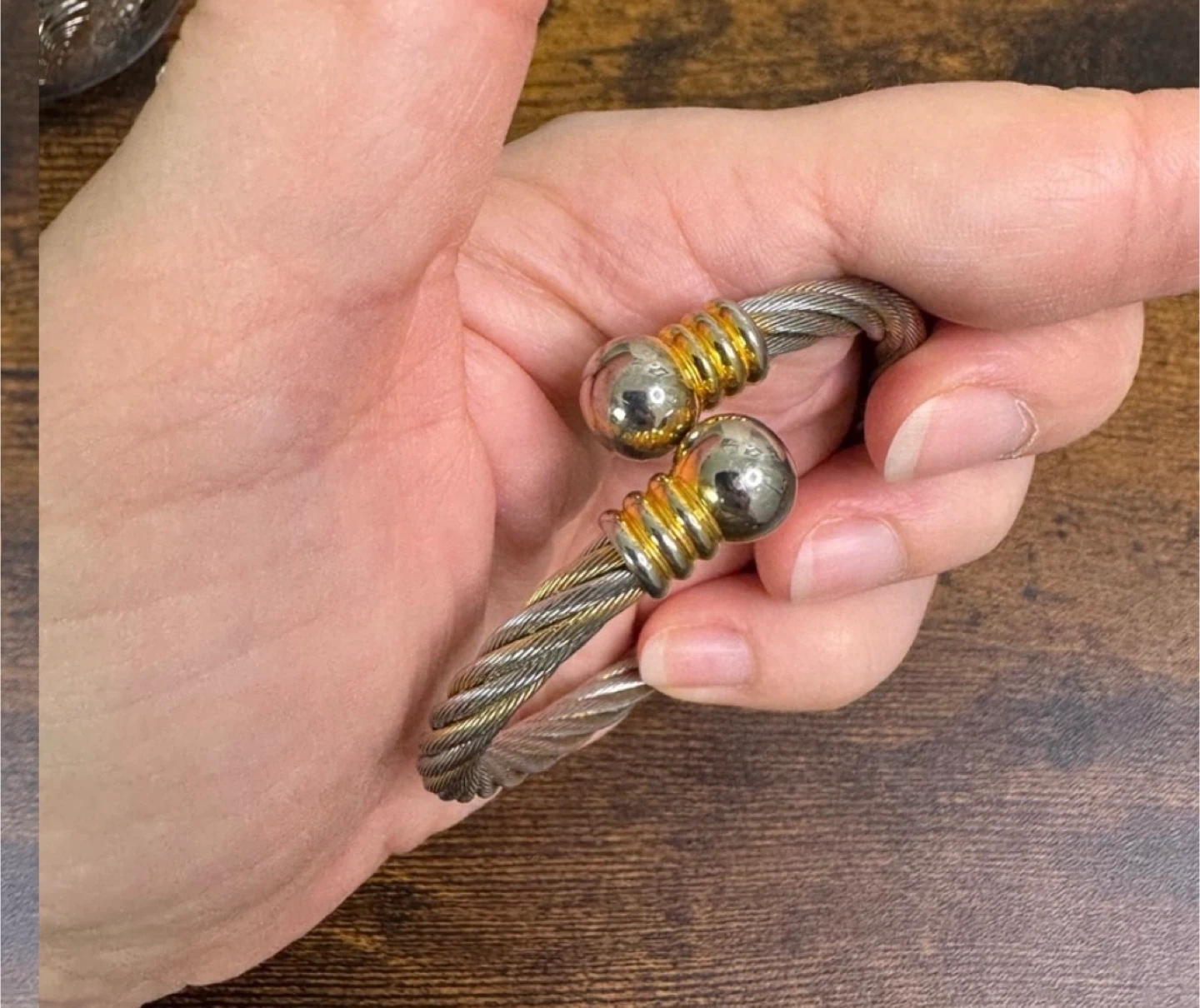 SILVER AND GOLD TONE WIRE CABLE & WOVEN BRACELETS