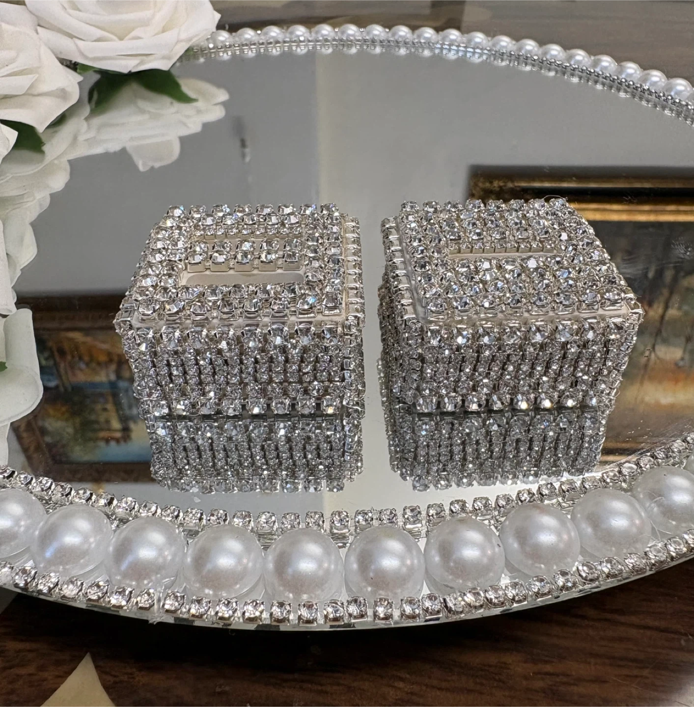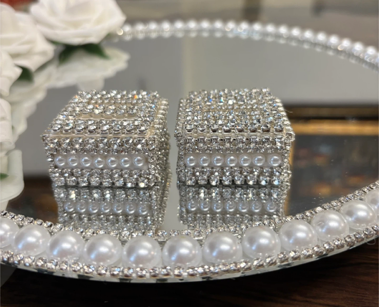 1: ring box: Handmade Jesmonite Ring Box with Pearls and silver rhinestone – Luxury Jewelry Display, Wedding Ring Bearer Box, Glam Vanity Decor. Set of 2.
