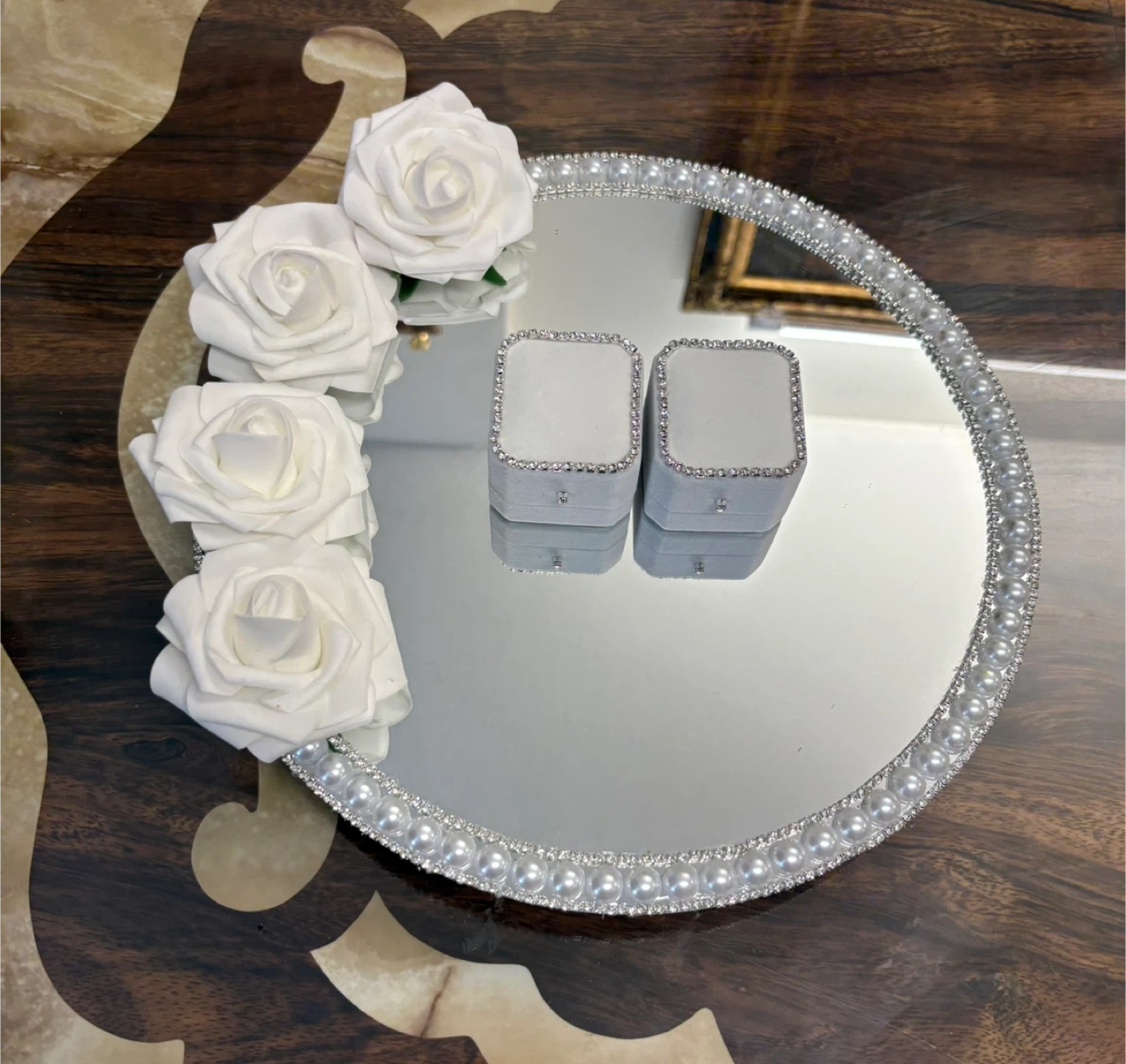 Elegance Meets Functionality. The Pearl with rhinestone and white flowers decorative Tray.