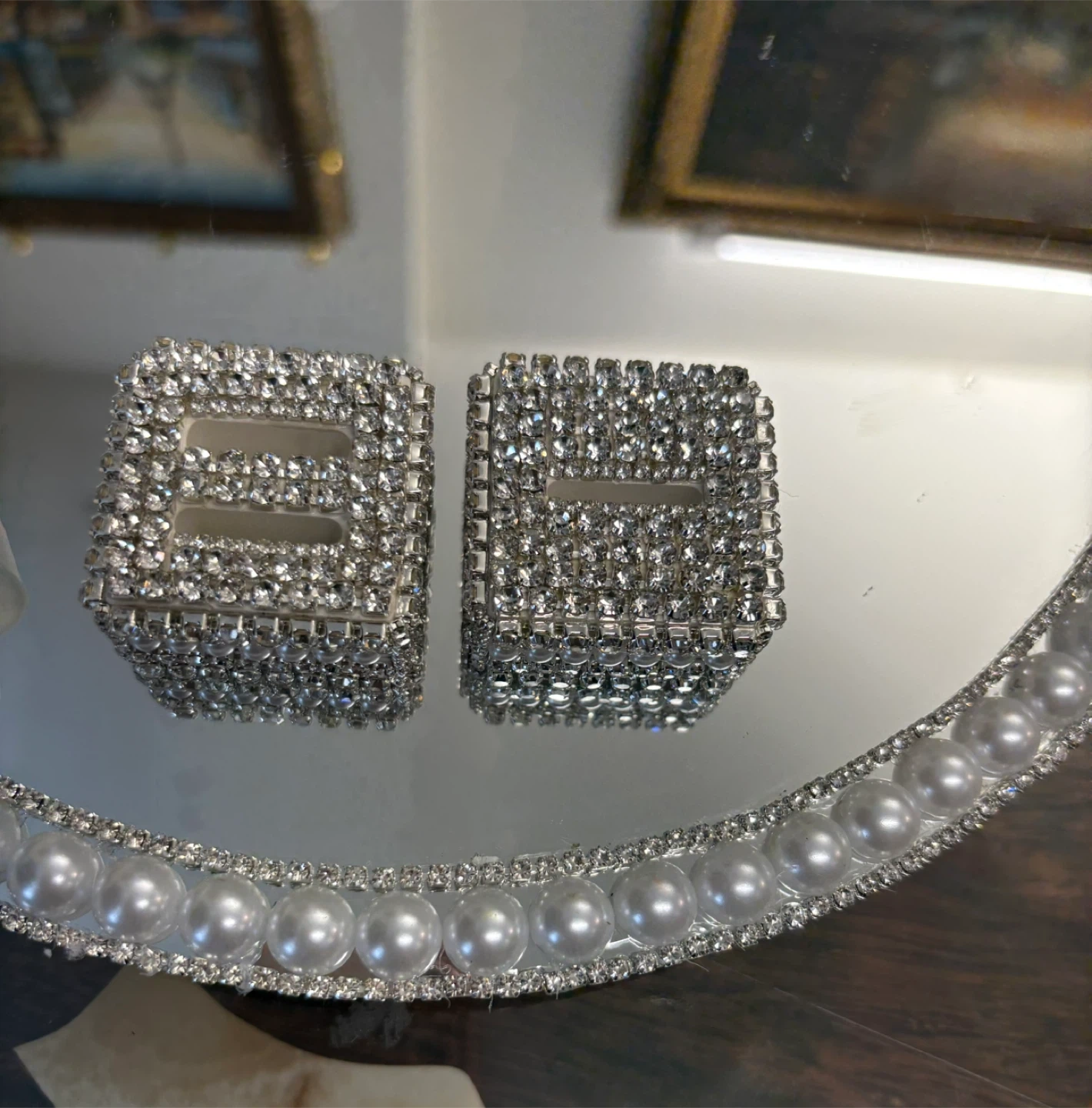 1: ring box: Handmade Jesmonite Ring Box with Pearls and silver rhinestone – Luxury Jewelry Display, Wedding Ring Bearer Box, Glam Vanity Decor. Set of 2.