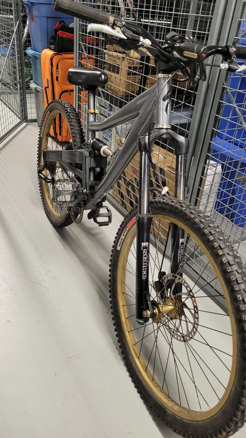 Specialized Big Hit Sport. Short frame, full suspension, 26" rims, 8-speed (1 x 8). Selling to purchase commuter bike.