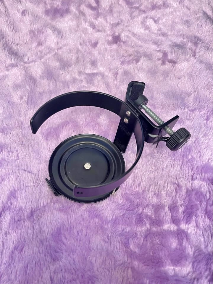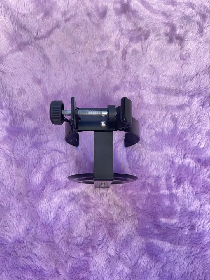Keep your drink secure and within reach! This adjustable clamp-on cup holder easily attaches to tables, desks, wheelchairs, strollers, music stands, mic stands, or any surface with an edge. Made from sturdy metal with a screw clamp for a snug fit. Fits most standard cups, bottles, or mugs.