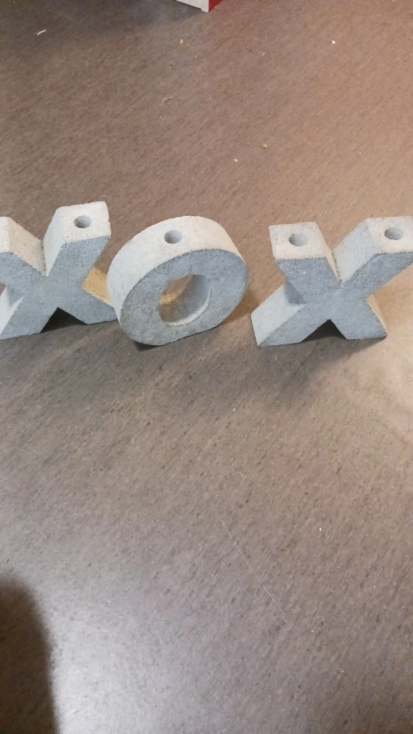 Charming concrete XOX set, perfect for outdoor lighting Each letter has a hole for decorative candles/lights. Great for patios or gardens! Sold as a set! Originally $15 a piece.